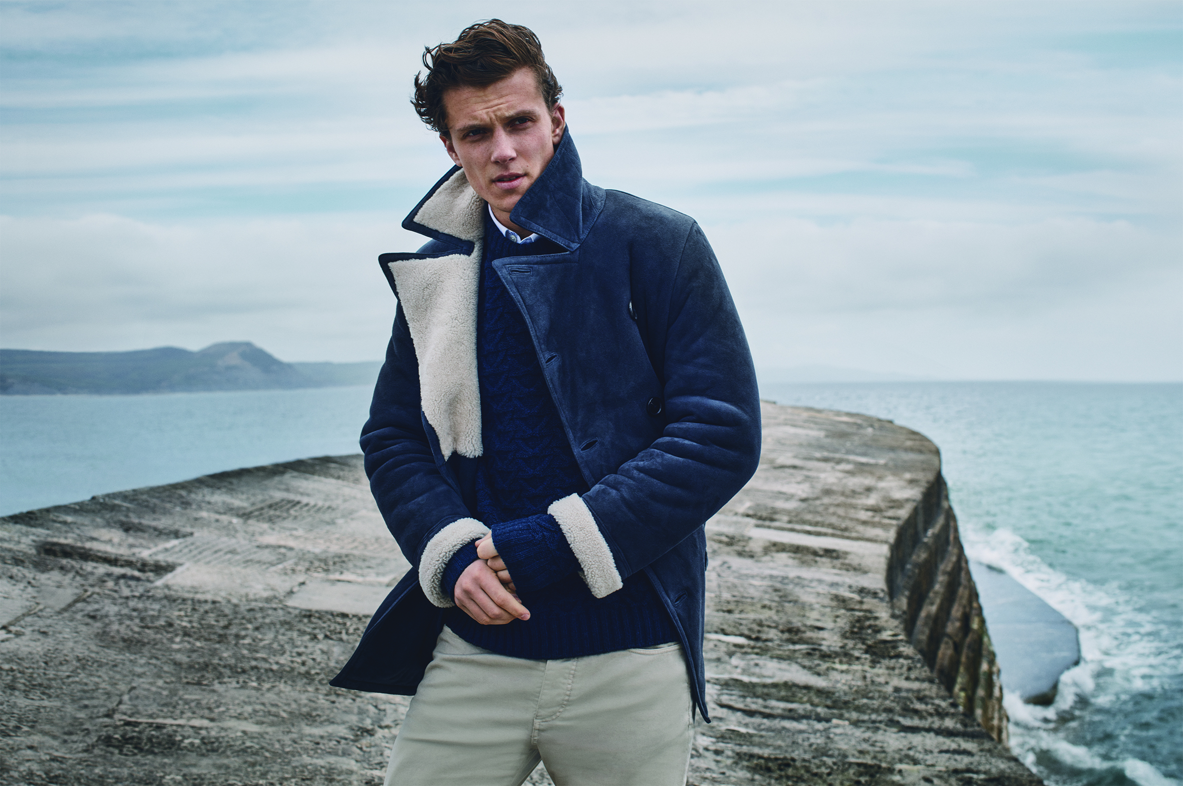 今季色彩以海軍為靈感,將午夜藍、海軍藍、赤黃、煙草及紅褐色等巧妙融合,並綴以乳白、灰、及海軍徽章沿用的深紅色,帶出更具現代海軍風格的服飾系列。羊毛法蘭絨等柔軟的布料配襯格紋圖案,適合男人們出席任何場合;版型及剪裁亦經過調整,例如外套採用全裡或半裡並同時調整袖形剪裁,提高耐用度之餘亦保持舒適。