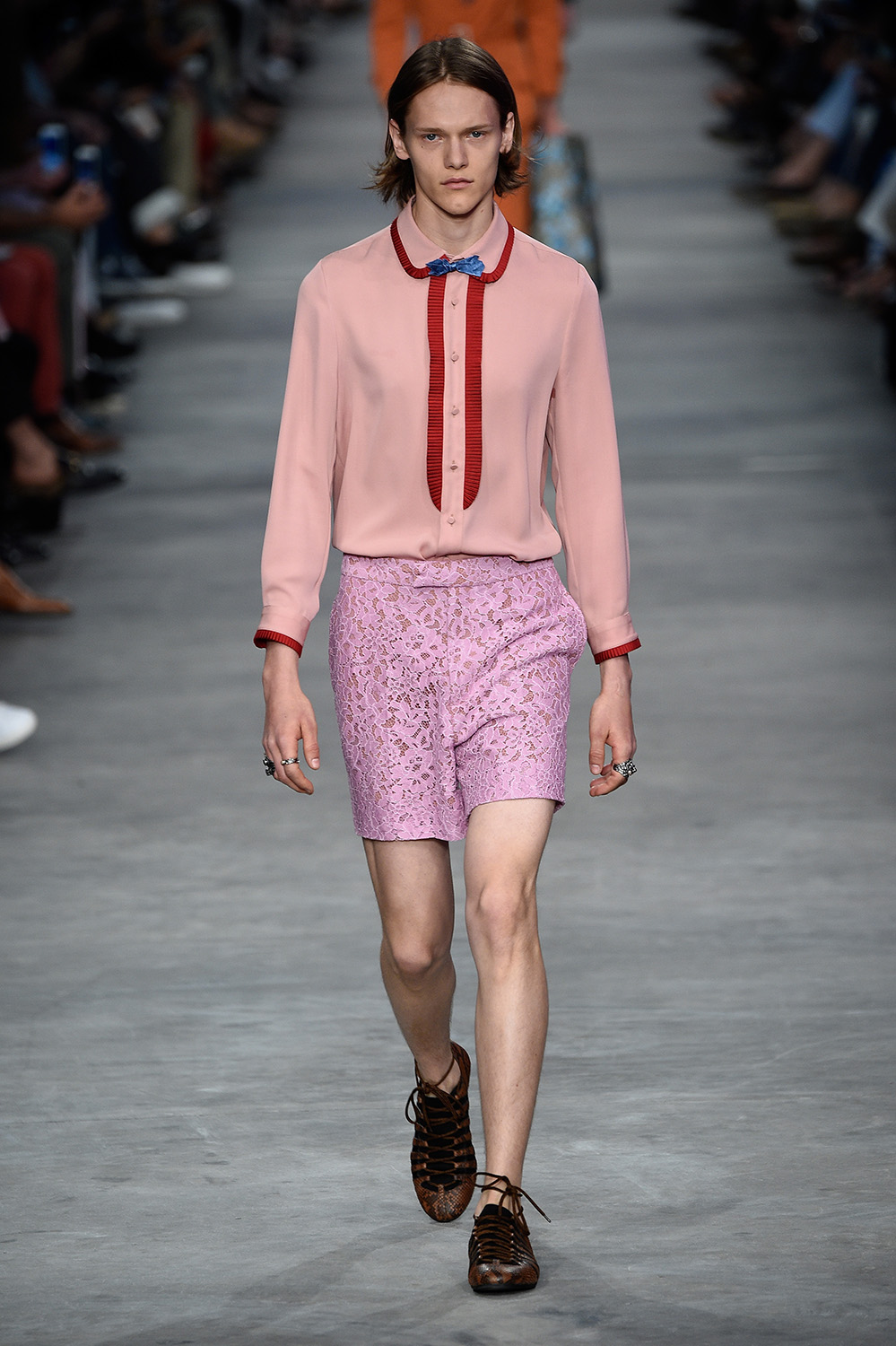 從伸展台上可以看見各種不同色調的粉紅色。圖:Gucci