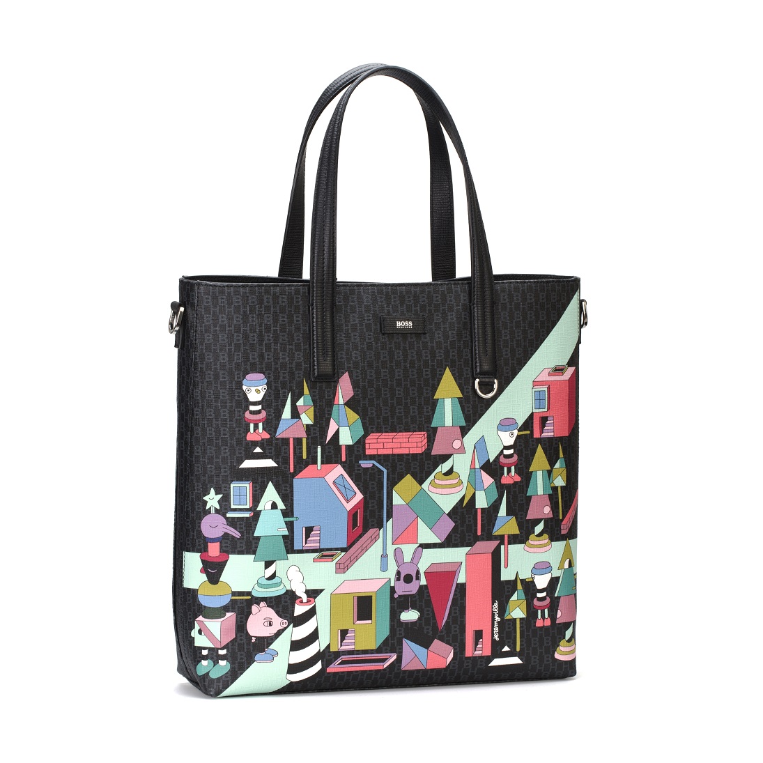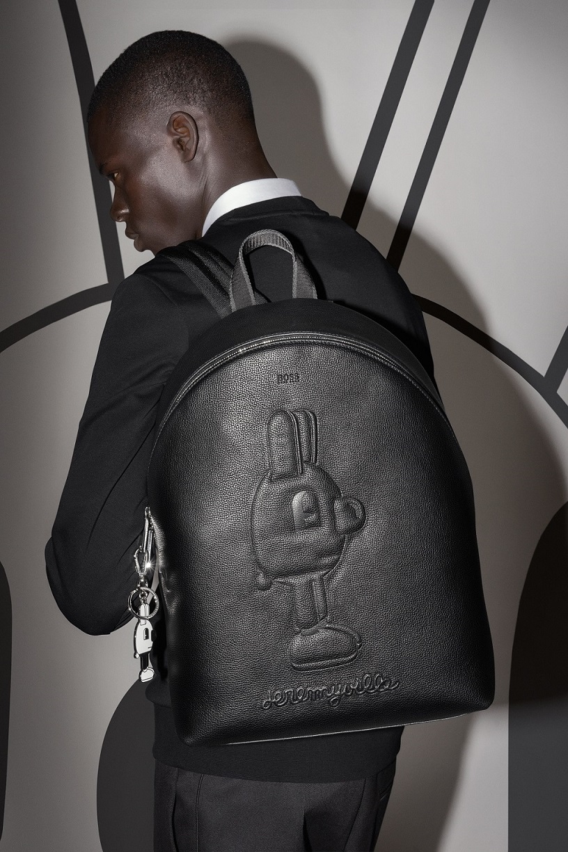 這些令人眼前一亮的設計以鮮明亮麗的色彩分別印於後背包及手拿包。HUGO BOSS的品牌標誌與Jeremyville的插畫互相結合,像是在印滿「HB」字母圖案的帆布背包上,烙上童趣的卡通角色;或是讓卡通主角以浮雕的突起效果印製在皮革配飾上。