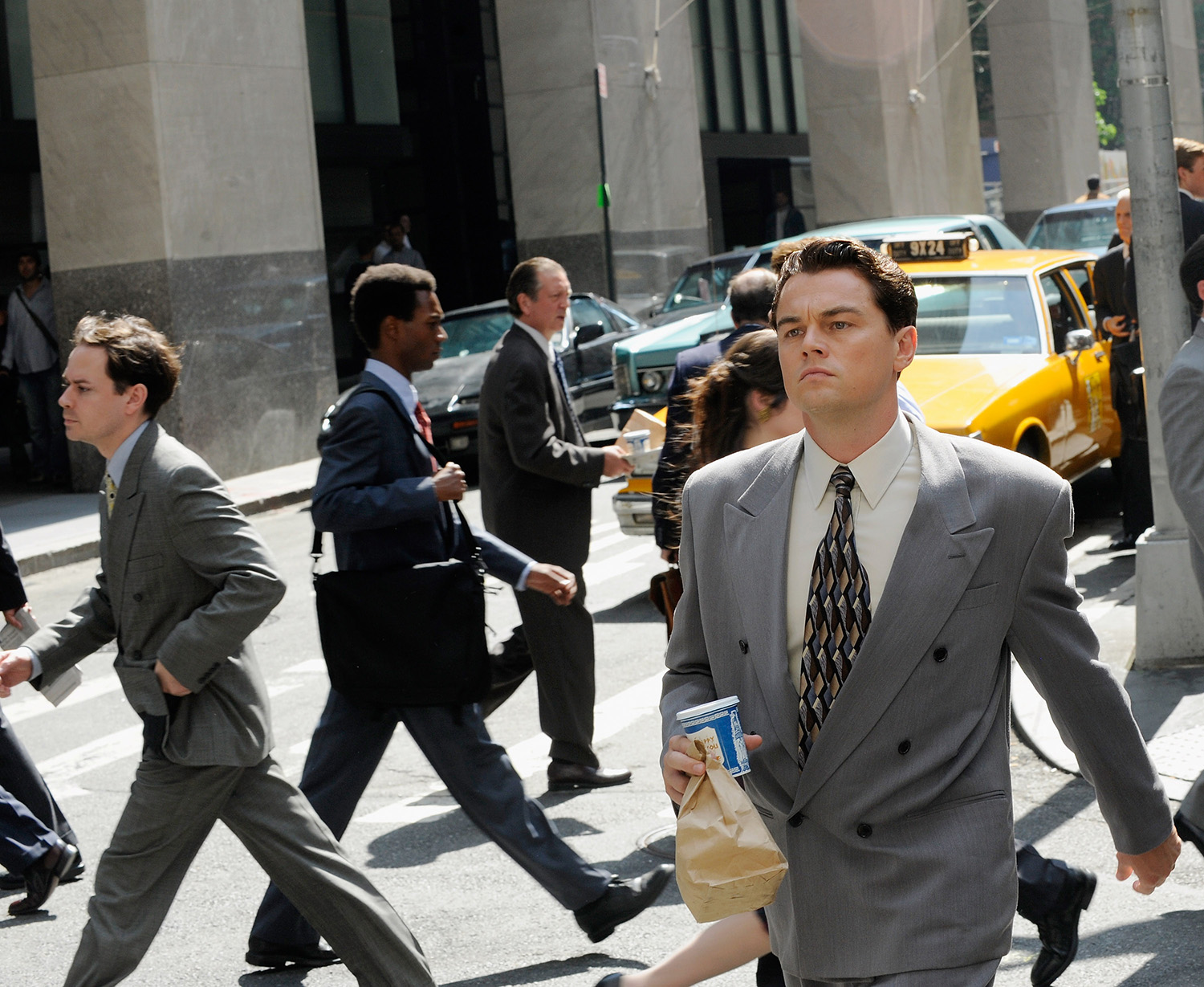 什麼叫做「穿得野心勃勃」?看看李奧納多就知道。(《華爾街之狼》劇照)