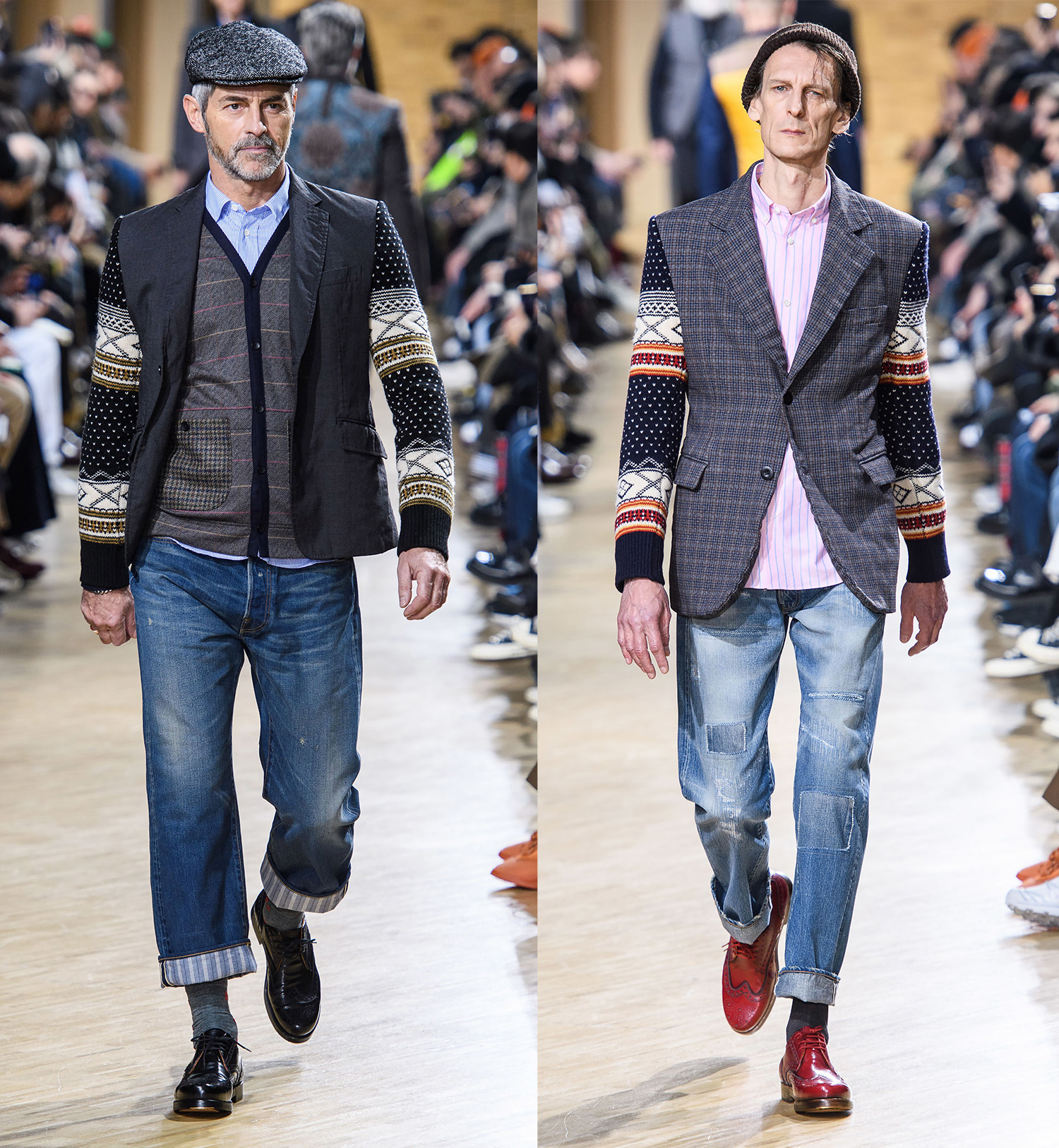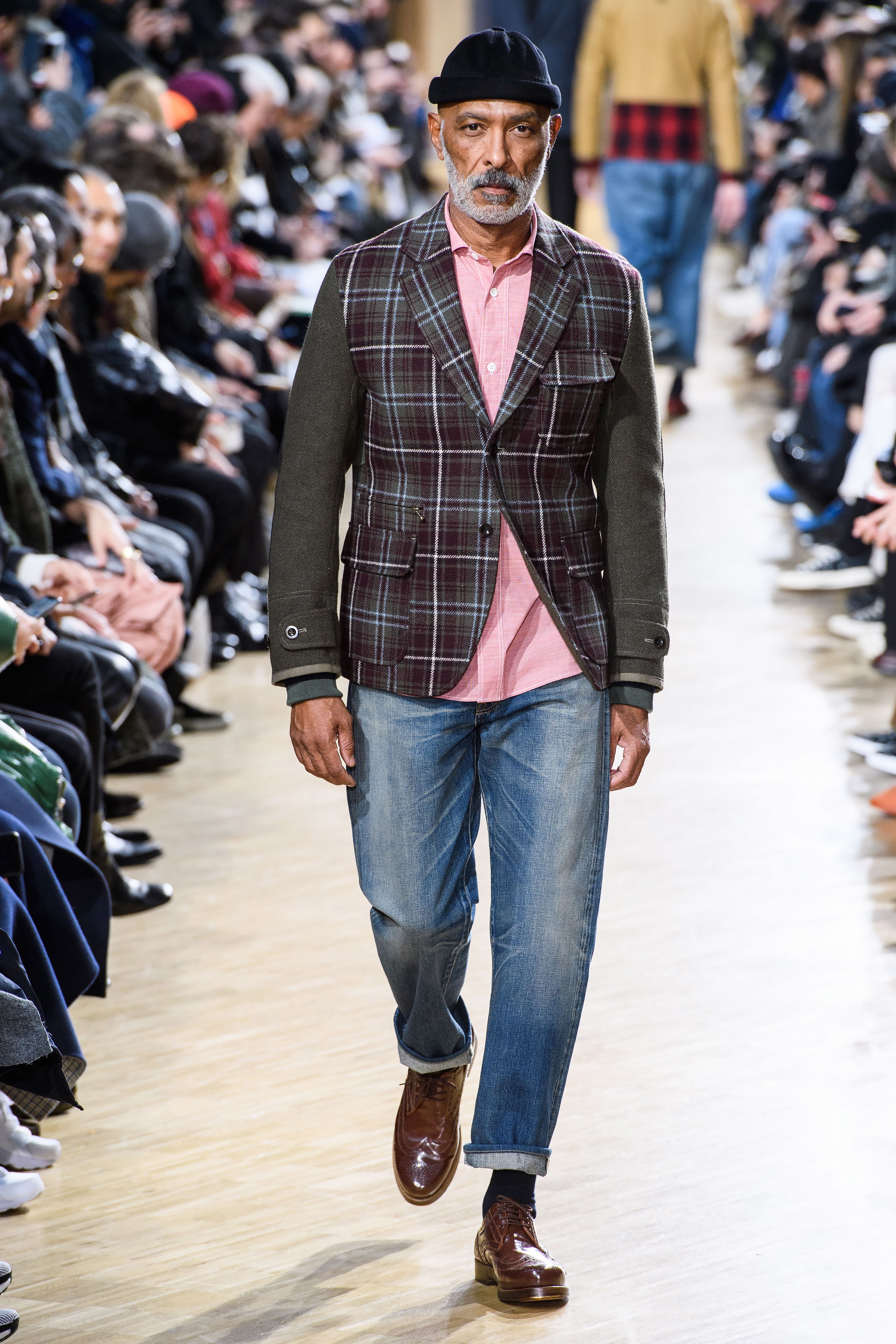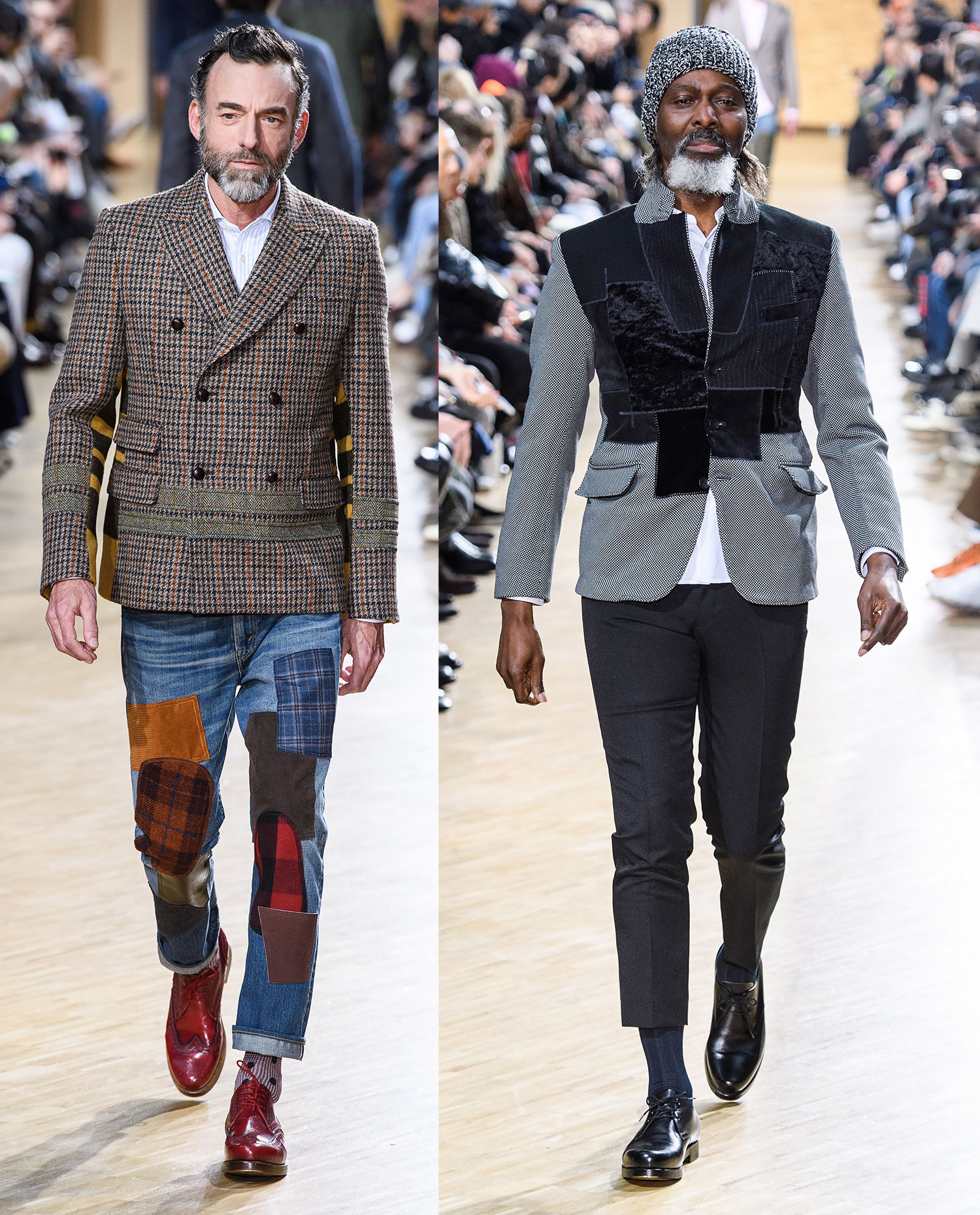 所以,透過Junya Watanabe的2019秋冬男裝系列,設計師渡邊淳彌向我們證明──或說重新強調一件事實:老男人要變得帥氣,有時候其實比小鮮肉要來得容易,資深的人生歷練亦可以撐起複雜單品,秀上諸多類似Thom Browne式的縮水短版超拼接西裝就是很好的例子。前提是身材某種程度的維持、以及一顆保持年輕的心。喔對了,或許還有修容得宜的加分鬍子。