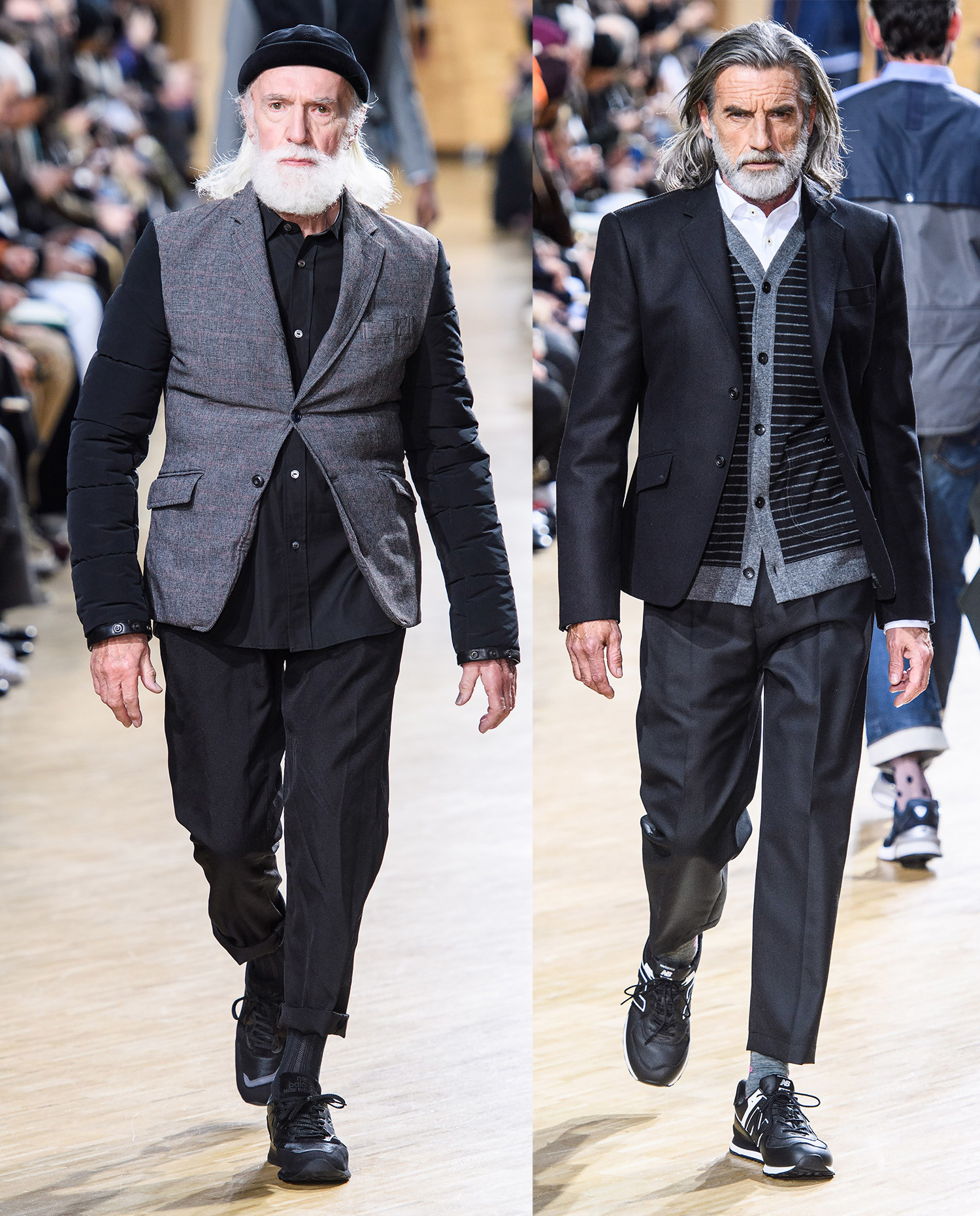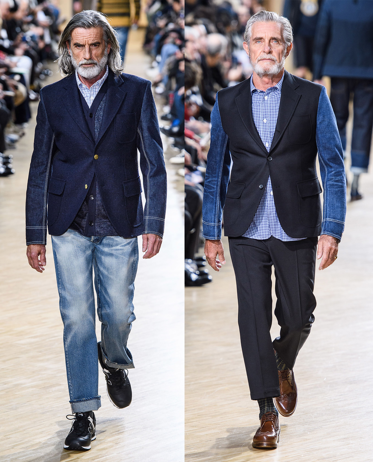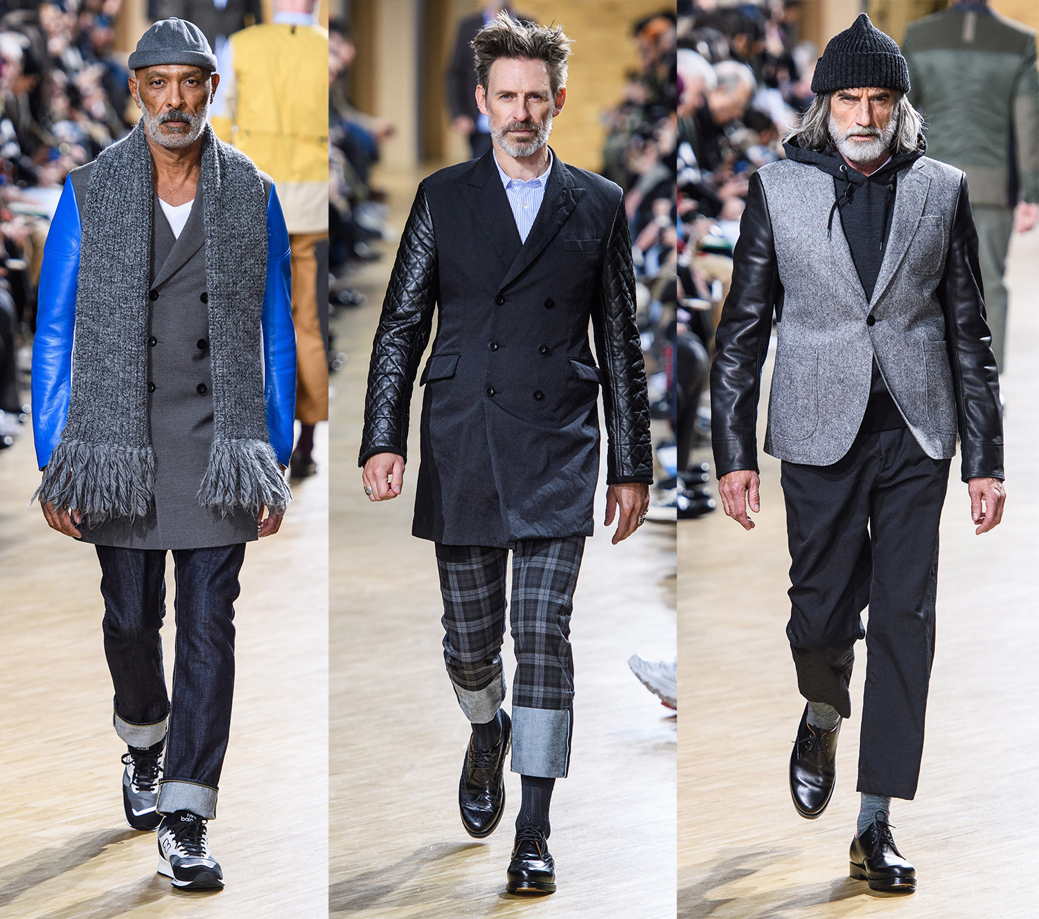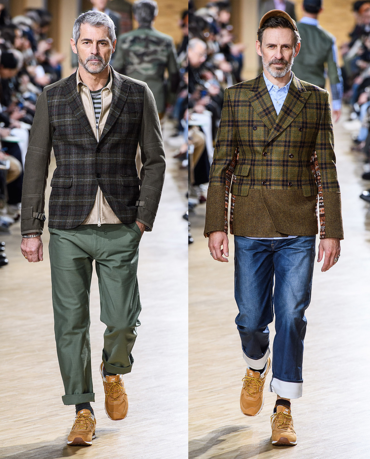 所以,透過Junya Watanabe的2019秋冬男裝系列,設計師渡邊淳彌向我們證明──或說重新強調一件事實:老男人要變得帥氣,有時候其實比小鮮肉要來得容易,資深的人生歷練亦可以撐起複雜單品,秀上諸多類似Thom Browne式的縮水短版超拼接西裝就是很好的例子。前提是身材某種程度的維持、以及一顆保持年輕的心。喔對了,或許還有修容得宜的加分鬍子。