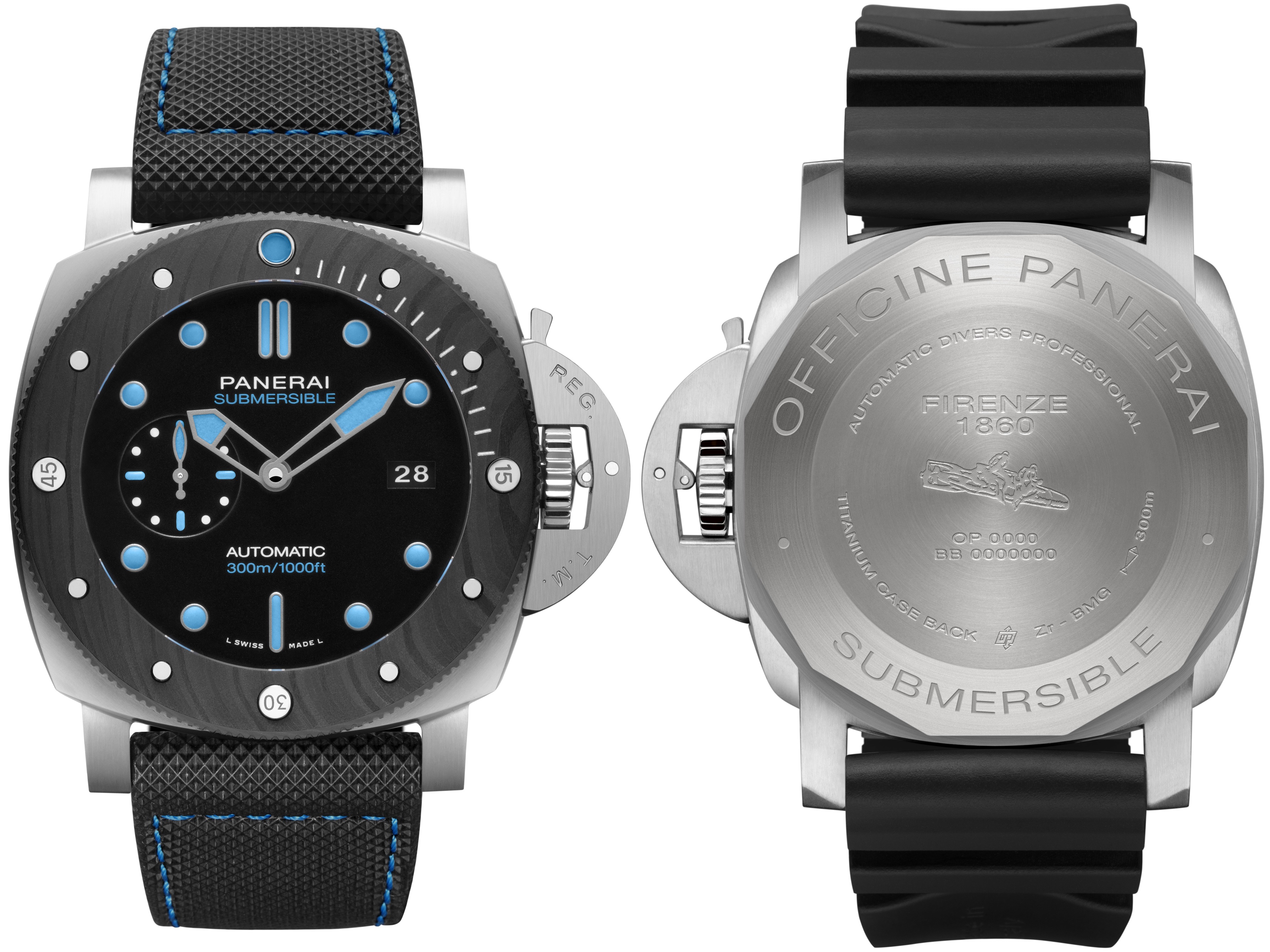 這次沛納海所推出的錶款,皆以視覺風格強烈的黑色與藍色配色,最受注目的款式莫過於結合品牌創意實驗室(Labratorio Di Idee)其中兩項最匠心獨運的創新發明——無比堅固耐用的BMG-Techtm金屬玻璃,以及極致輕盈的Carbotech碳纖維複合物料。結合此兩個研發成果正是「沛納海BMG-Tech專業潛水金屬玻璃腕錶」。此種材料特性無比堅固、高度抗腐蝕,同時能夠抵禦外來衝擊和磁力,在功能與美學上都是上乘之作。
