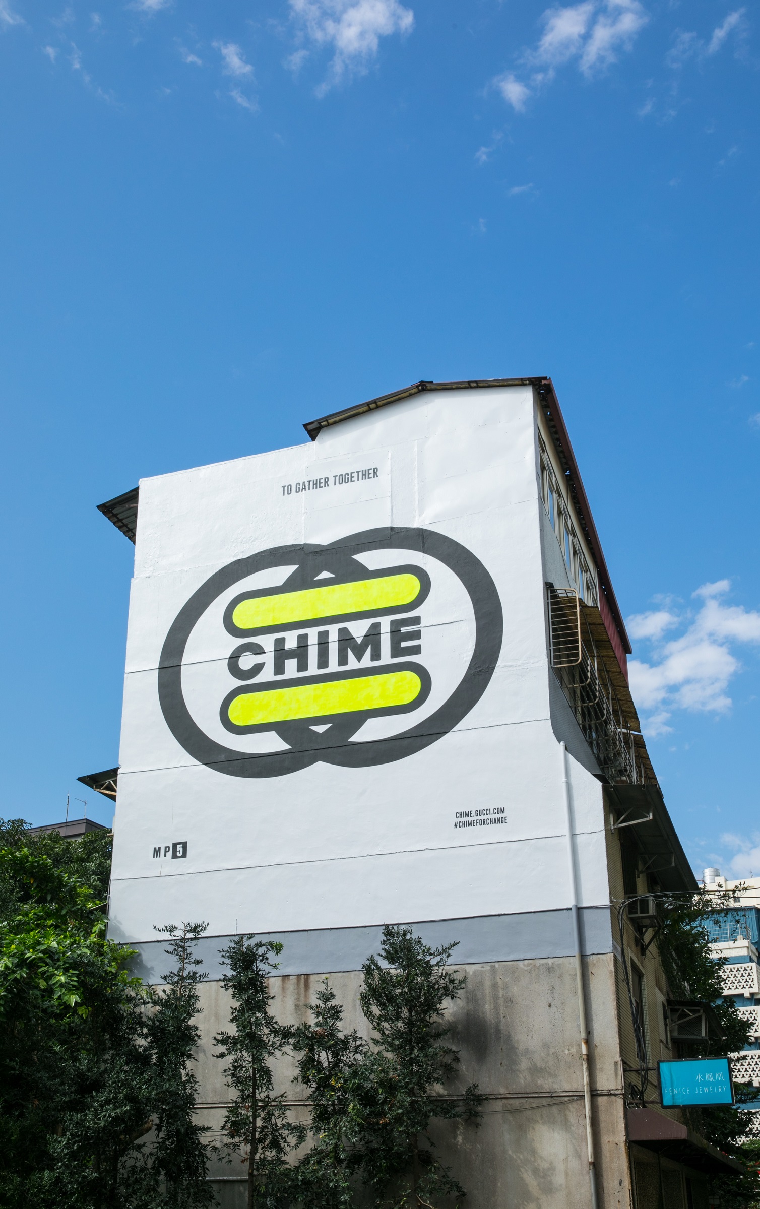 宣導品牌理念的藝術牆(Gucci Art Wall)也在這個重要時刻全球同步翻新,包含被譽為打卡新聖地的台北永康街藝術牆,換上由義大利視覺藝術家MP5所設計的「Chime For Change」(希望響鐘)活動標識,透過發掘下一代的力量進一步倡導性別平等,以「To Gather Together」(齊心眾力) 的口號標語,呼籲全球社會團結並支援兩性平等。