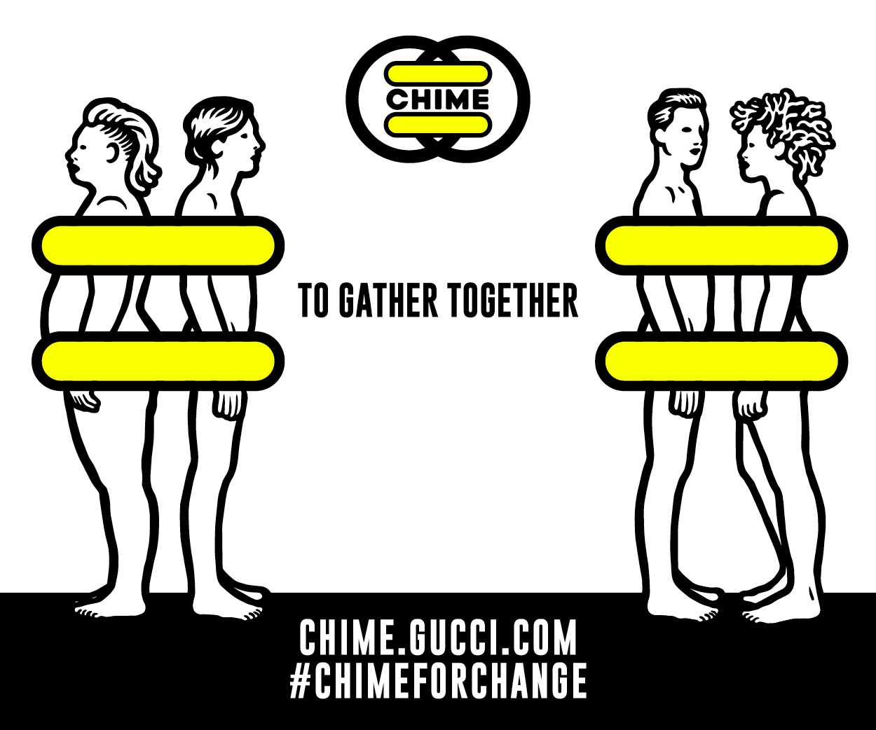 由義大利藝術家MP5所設計的「Chime For Change」活動標識,將Gucci雙G logo加以變化,透過消弭兩性象徵的符號,倡導性別平等的重要性。