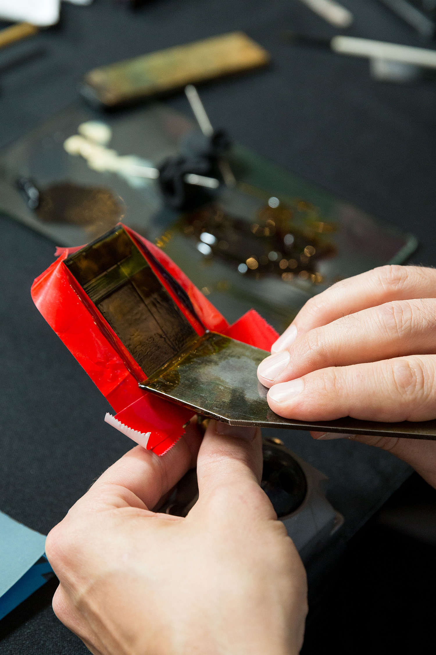 時間淬練是工藝之美的必要。專精的工藝師要有冷靜的人格特質,天生獨到的審美能力和一雙穩定的手。Yoann反覆揉弄著,那雙看起來柔軟,厚實而又整潔的大手,他若有所思地說,他有責任在日漸式微的傳統工藝中,負起傳承中國漆藝的使命。不斷接受挑戰,鎮日沈浸在漆品藝術氛圍中,Yoann有感而發地說,「高級訂製」可以說是法國時裝產業的象徵,但除了時裝之美,其實這個名詞更代表了由一般日常功能進階收藏和投資潛力等級的意義。而「都彭」心心念念將中國漆藝保存並發揚光大的堅持,讓人再次看見法國「高級訂製」 的傳承。