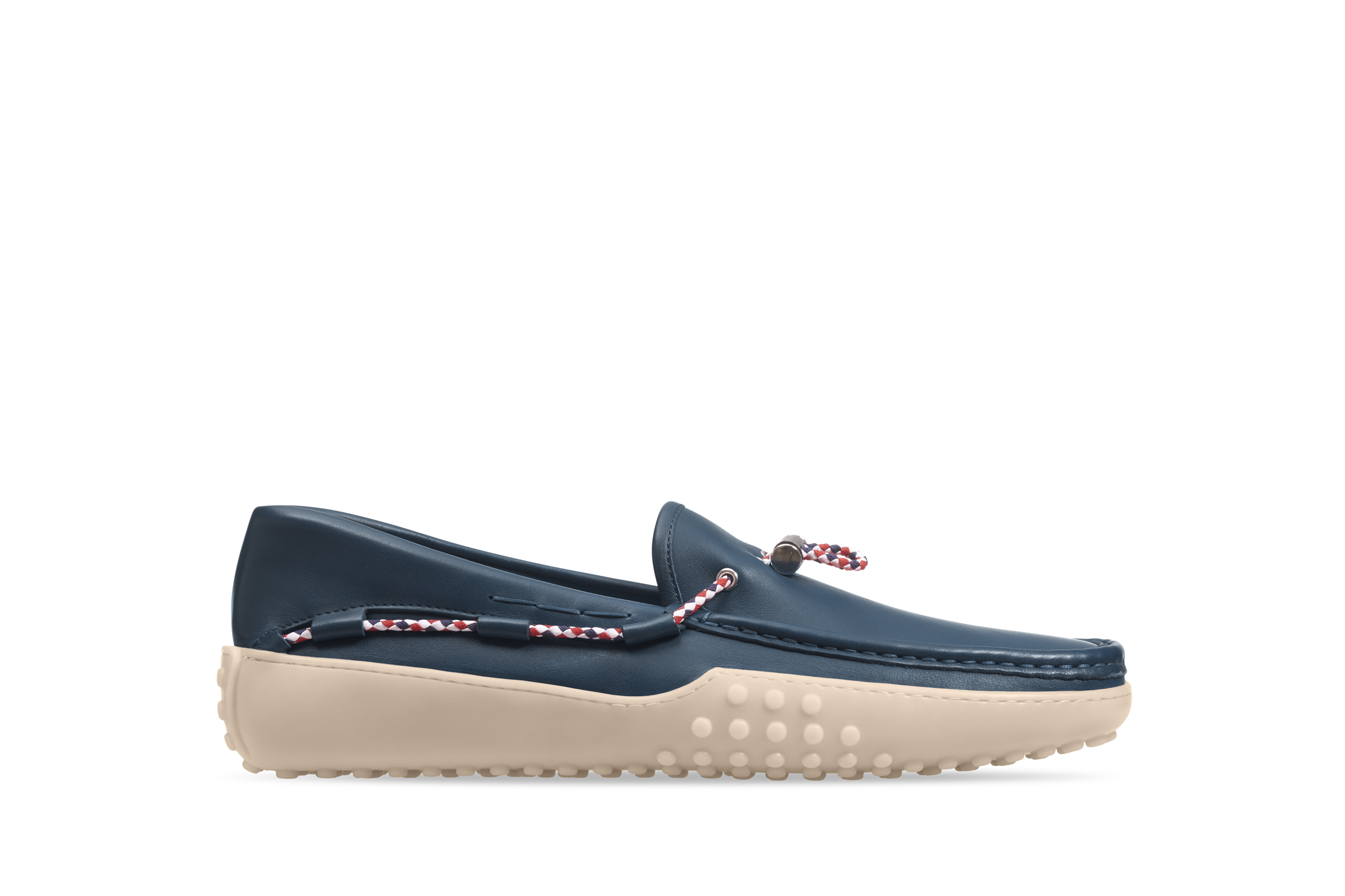 設計靈感來自帆船水上活動,加上內斂細節處理一直是每季TOD’S 的拿手絕活,此款鞋履構造製成如同“襪子”般建立在輕質鞋墊上,高科技材質的運用不僅減輕鞋的重量,更增加腳部的靈活伸展能力,穿著時的貼合感和包覆性更完整;搭配撞色線條清新明亮設計,巧妙混搭提升視覺吸引力。