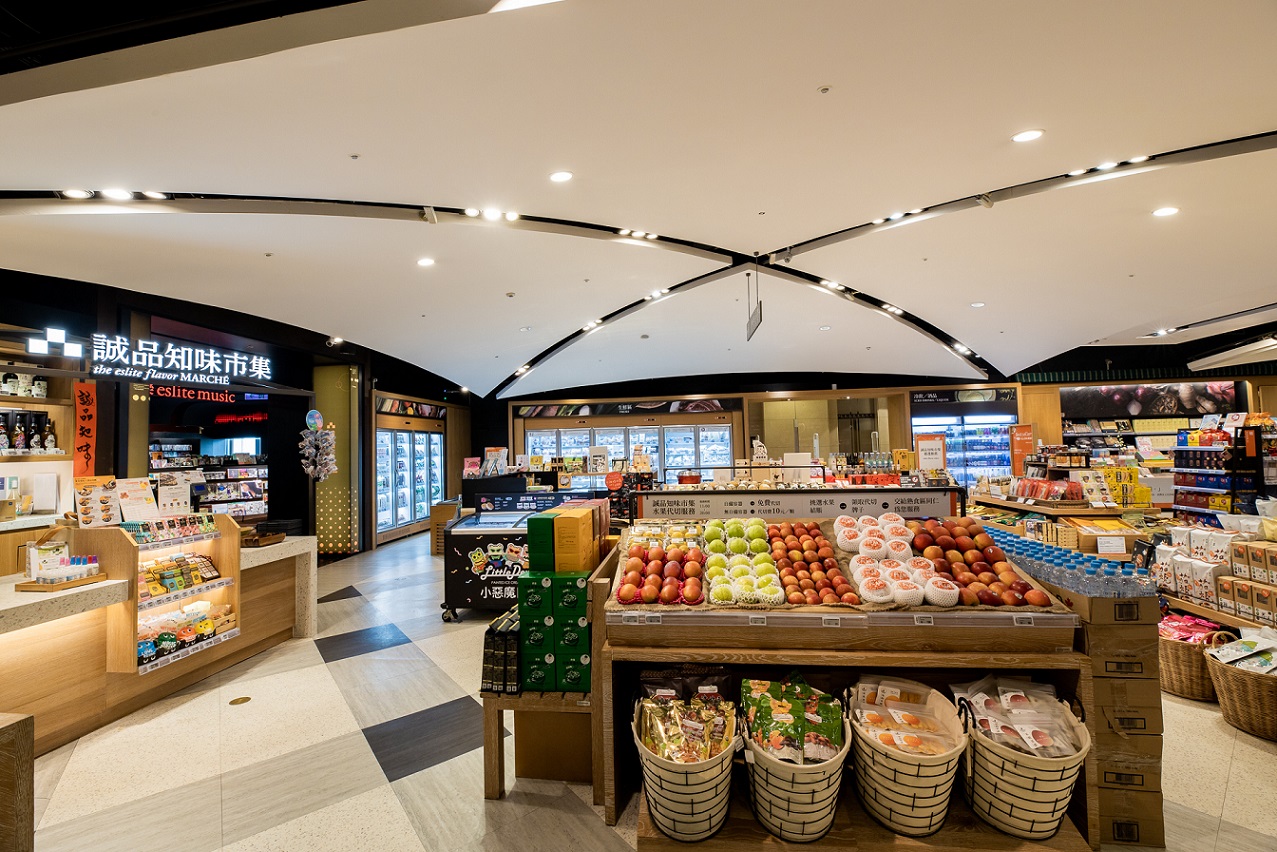 首創將生鮮超市加入誠品書店,現場可買到多樣化的蔬果、海鮮肉品與小農鮮乳,以及獨家販售的紅殼茶葉蛋。挑選獸醫師照顧避免雞隻過勞的紅殼蛋,選有機綠茶為基底,