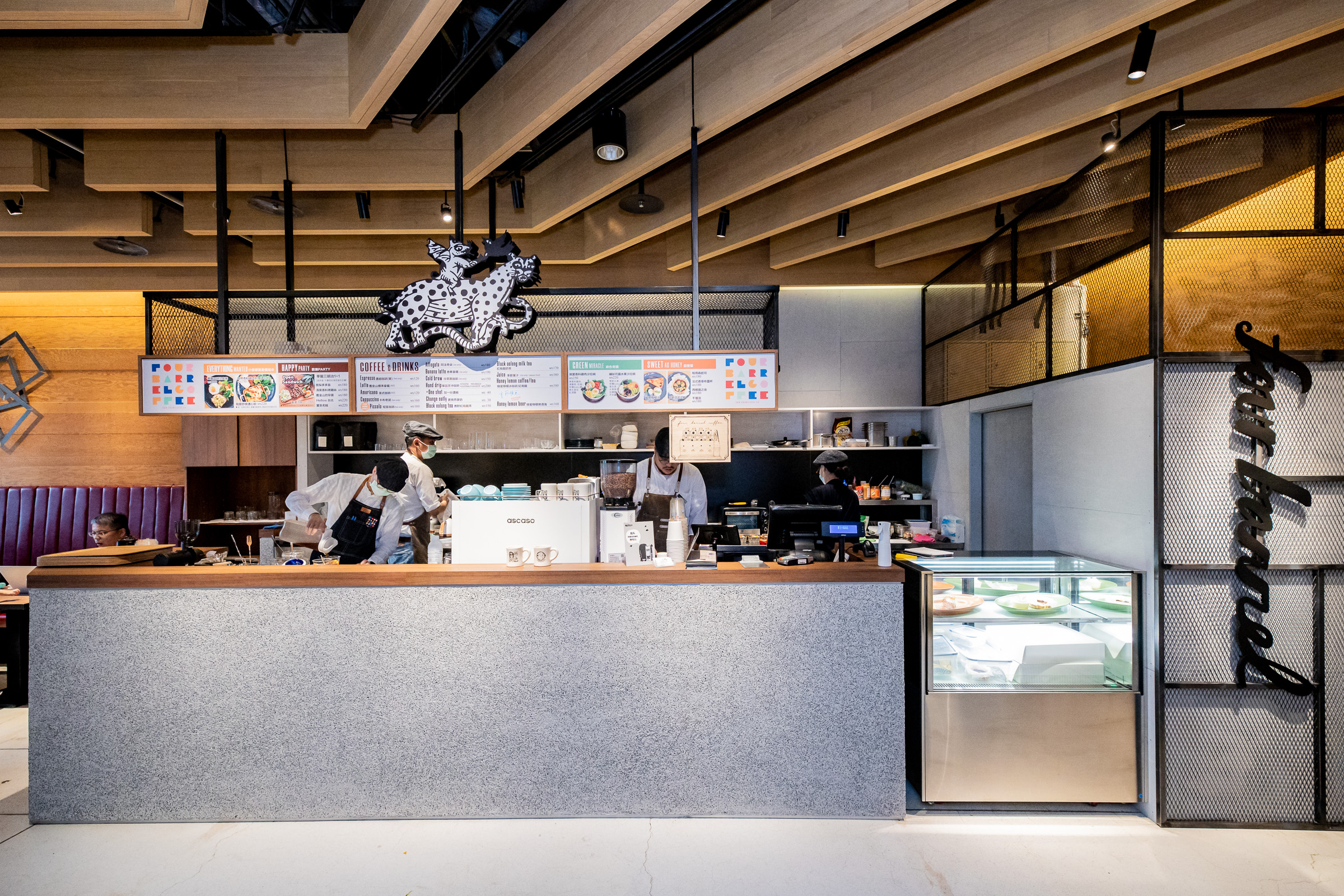 美國舊金山咖啡四大天王之一的四桶咖啡海外首店於二樓開幕,完整移植舊金山本店的雅痞藝術風格。推薦飲品:蜂蜜檸檬冰咖啡、短笛咖啡。