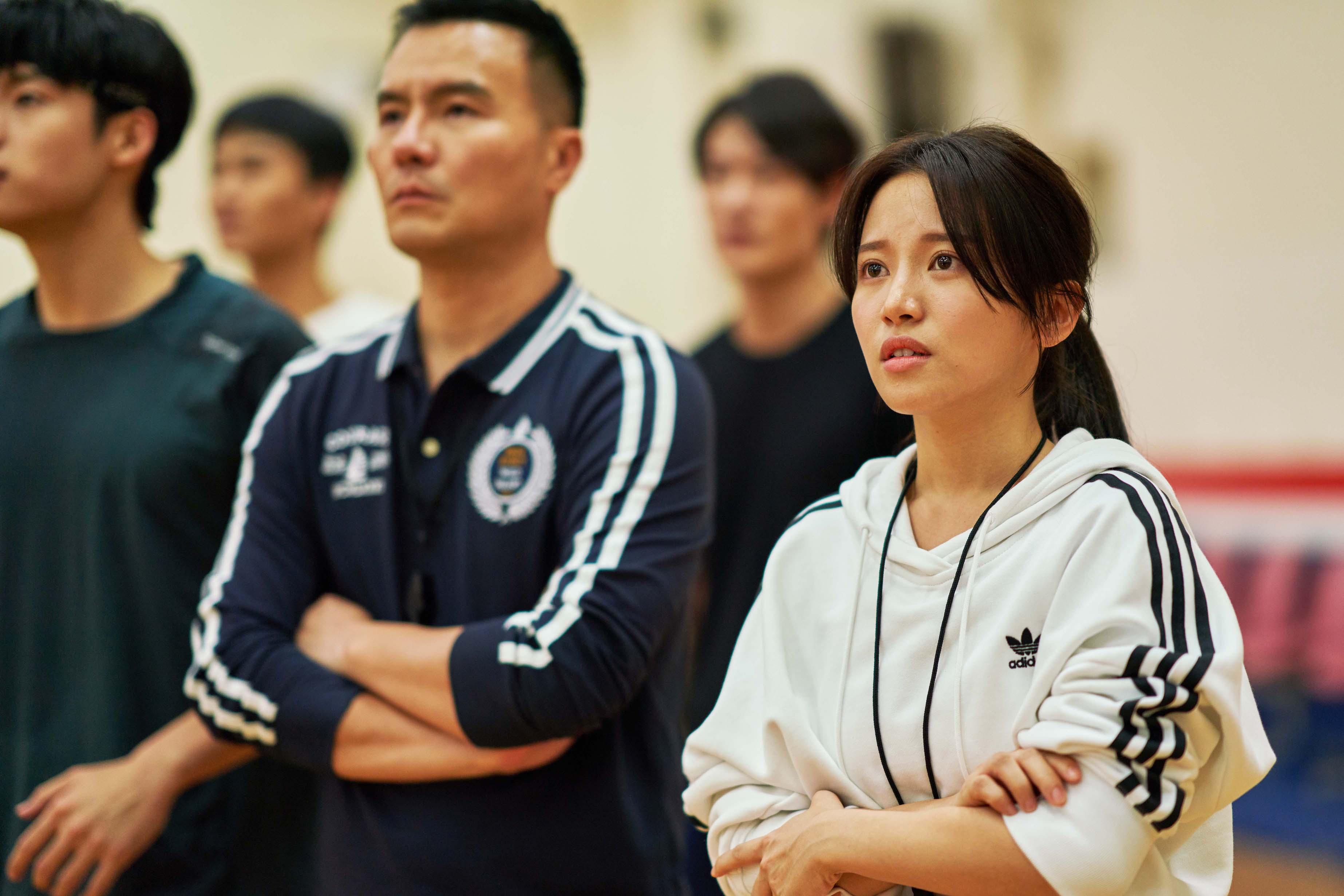 《違反校規的跳投》蔡瑞雪(右)飾演籃球校隊經理,左為飾演籃球教練的李銘忠。