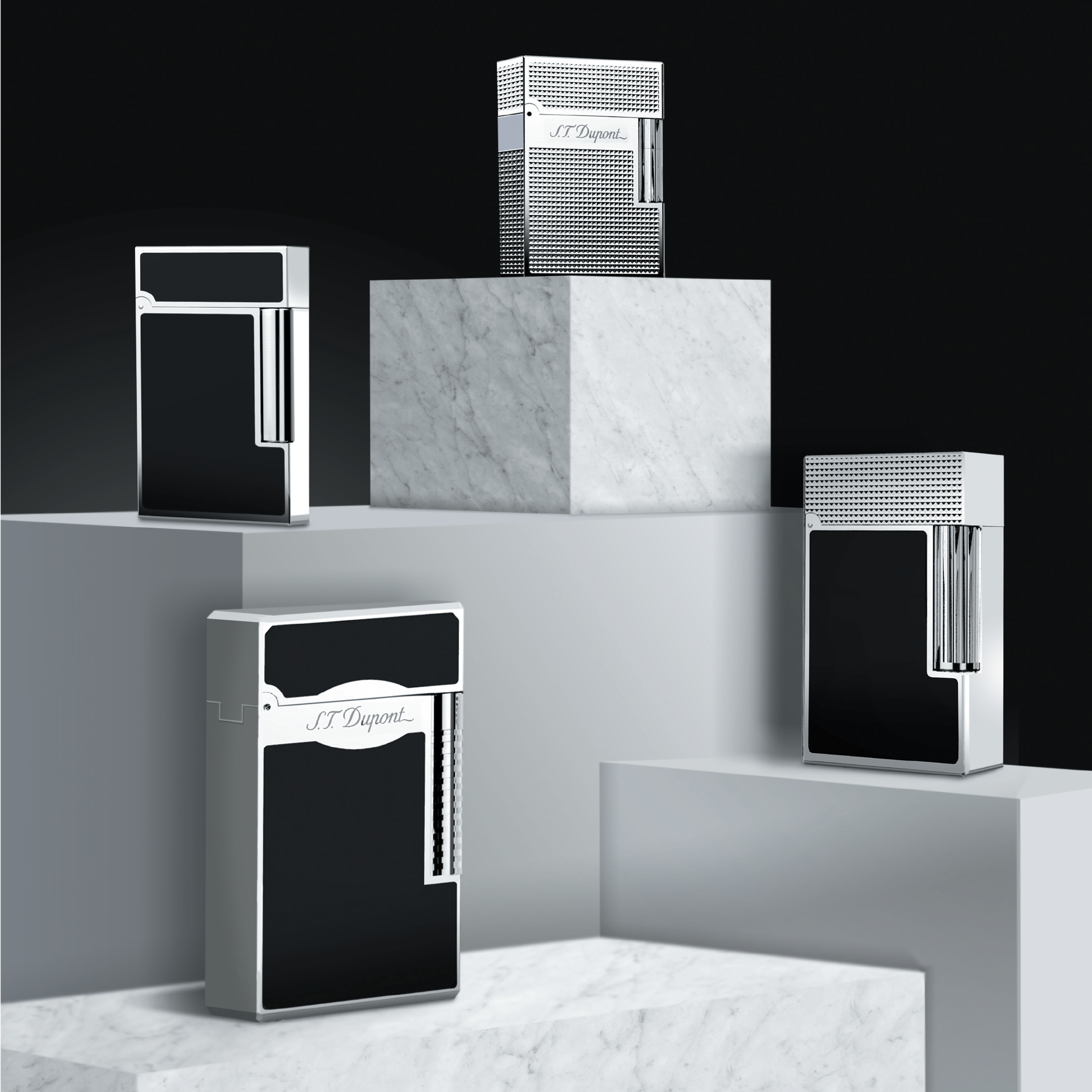 Fuente限量系列(由左至右順時針):Maxijet雪茄剪_$5,900、Ligne2打火機_$68,800、Line D鋼珠筆_$49,800、Maxijet_$7,900 by S.T. Dupont。
