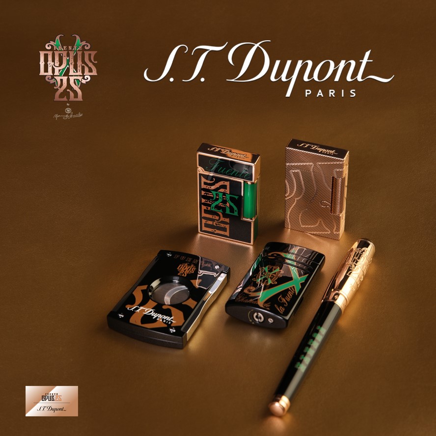 由於Fuente Opus是Arturo Fuente雪茄家族的頂級雪茄系列,為紀念Fuente OpusX的25週年,特別推出針對雪茄鑑賞家的作品,比如帶有Fuente圖案的經典雙火炬Ligne 2打火機、Maxijet打火機和雪茄剪等。然而同系列也有推出高質感的書寫工具,Line D黑色天然漆面鋼珠筆,順手好寫,質感非凡的金色系,上頭刻有OpusX logo及品牌經典logo,相當適合送給事業剛起步的年輕爸爸。而沈穩內斂的黑,不僅是時尚的代表色,也頗能展現使用者優雅的性格。經典的Ligne 2 Slim系列打火機,纖薄輕巧,使用時可享受如水晶般悅耳響亮的「Cling」開蓋聲,有此習慣的人肯定知道使用打火機時那舒適的手感。