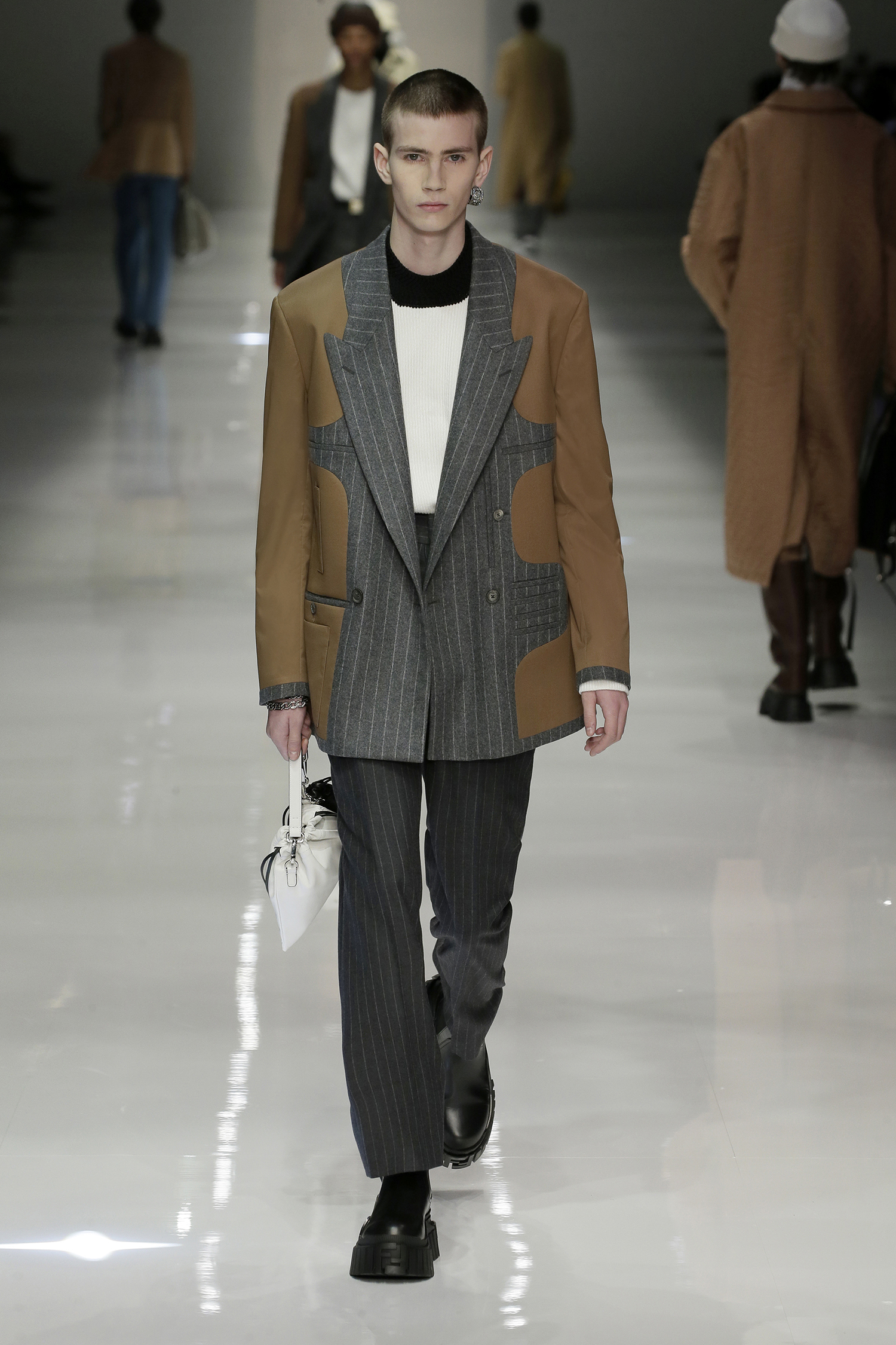 當男人在討論時尚時,往往離不開經典事物,這些通常都是和衣櫃必備品劃上等號的東西,且無論流行如何改朝換代,西裝、大衣、運動夾克等單品永遠都會佔有一席之地。Fendi第三代掌門Silvia Venturini Fendi在本季秋冬為傳統男裝做出了復古未來主義式的預言,就算是我們習以為常的基本款,在此刻(或未來),也應該要有更深一層的進化。