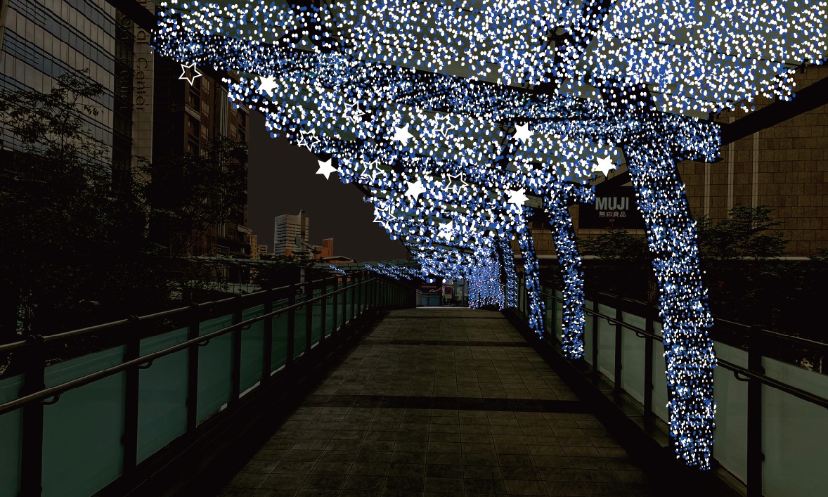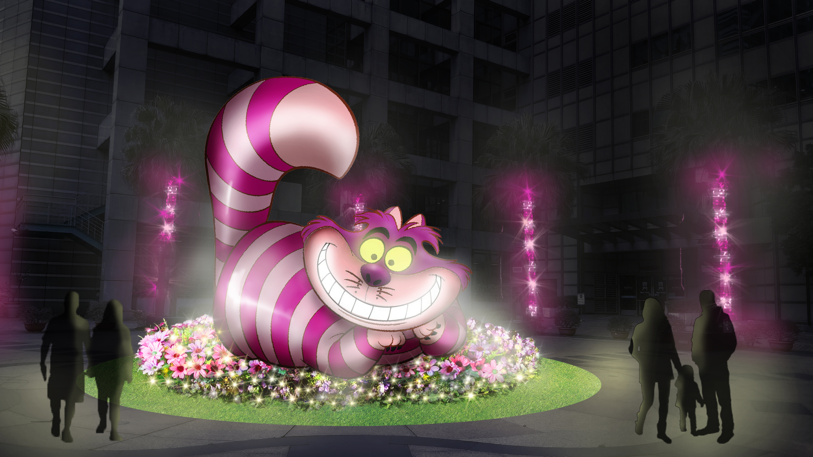 市民廣場外圍人行道上,今年也以迪士尼經典故事為主題,利用繽紛可愛的迪士尼燈飾,打造「童話夢幻燈區」,包括:「愛麗絲大道」、「霓裳大道」、「時光大道」、「浮光大道」等燈飾區。在《愛麗絲夢遊仙境》中可愛的妙妙貓,也活靈活現地趴坐在中山路與新府路口!