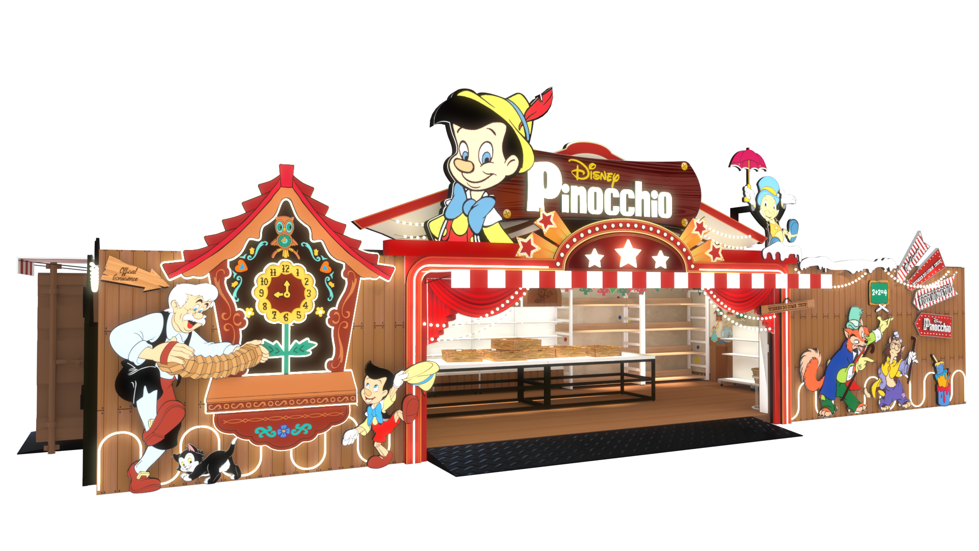 以「迪士尼經典童話」為主題,讓《木偶奇遇記》、《愛麗絲夢遊仙境》、《小飛俠》、《小飛象》與「迪士尼公主系列」等肖像之經典場景,活現於 2020 新北歡樂耶誕城。