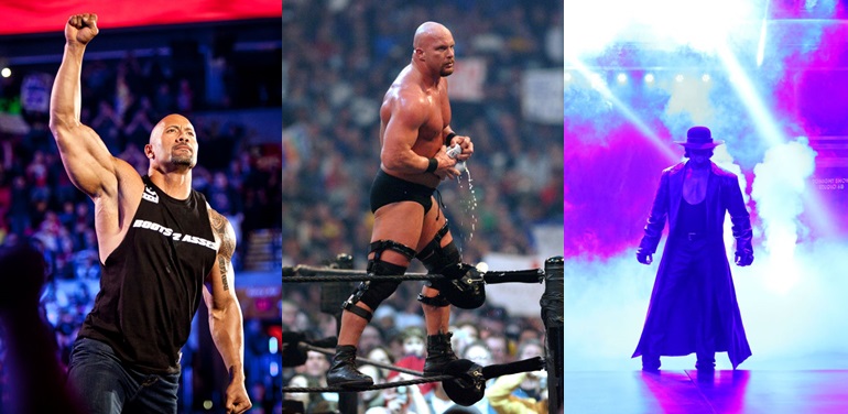 這一系列戰神級行頭可不簡單,每款都代表著一位殿堂級選手:冷石以駭人的「扣頸斷頭台」(Stunner)聞名,能瞬間秒殺任何對手;個性桀敖不馴、豪爽不羈的他,常透過比中指的方式與觀眾互動;打倒對手後在擂台上暢飲啤酒的形象,更是摔角史上最經典的一幕。好萊塢動作明星巨石強森在全球大紅大紫,不過別忘記他可是昔日的摔角帝王。獨特的挑眉動作、精采的終結技「人民肘擊」及讓人血脈賁張的出場詞:「猜猜巨石要怎麼修理你們?」(If you smell what the rock is cooking!)都讓摔角迷歷歷在目與印象深刻。送葬者的人設是一位陰間使者,也是沒有痛覺的活死人,擁有神秘的力量的他,常散發讓人不寒而慄的氣場,終結技「墓碑落下」與經典主題曲「安息吧」(Rest in peace)都再再渲染了他的無情與強大。這位惡魔曾親手埋葬無數膽敢阻擋在他面前的挑戰者,至今仍是暗黑摔角英雄的代表,無人能出其右。