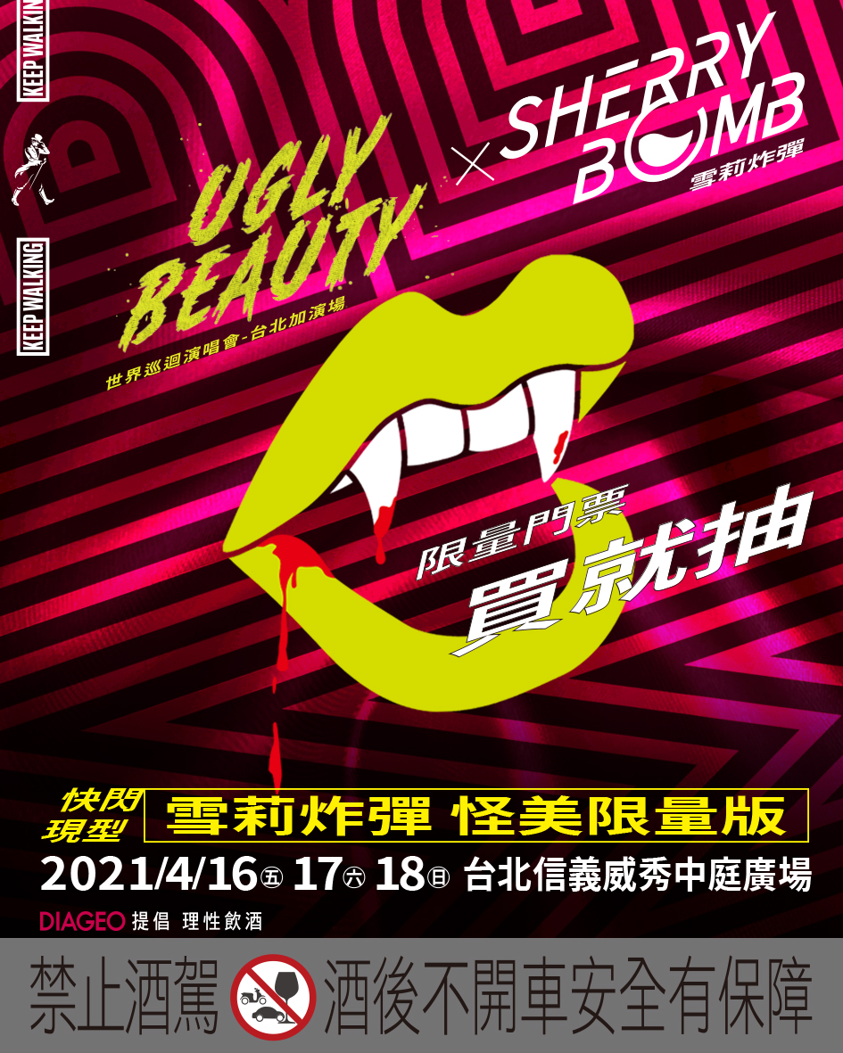 女神卡卡自西方橫空出世,而東方也有「怪美女神」蔡依林坐鎮!擅長七十二變的她,常以獨特的造型帶給無數粉絲驚喜。日前知名威士忌品牌約翰走路(JOHNNIE WALKER)宣布贊助蔡依林Ugly Beauty世界巡迴演唱會──台北加演場門票400張!於4/16(五)至4/18(日),在信義威秀中庭廣場限時推出快閃店活動,號召鋼鐵Ugly Beauty粉絲打破世俗規則,親臨現場秀出怪美態度,並販售「雪莉炸彈怪美限定版」酒款,附贈演唱會螢光綠與炫目桃紅為設計元素的繽紛提袋,既吸睛又好拍,民眾只要當場購買,即可抽一票難求的演唱會門票!還能立即試飲時下最潮的「雪莉炸彈怪美特調」,清爽冬瓜茶 x 馥郁香甜的雪莉炸彈保證瞬間衝擊味蕾,帶你呸(Play)出最不一樣的威士忌體驗!