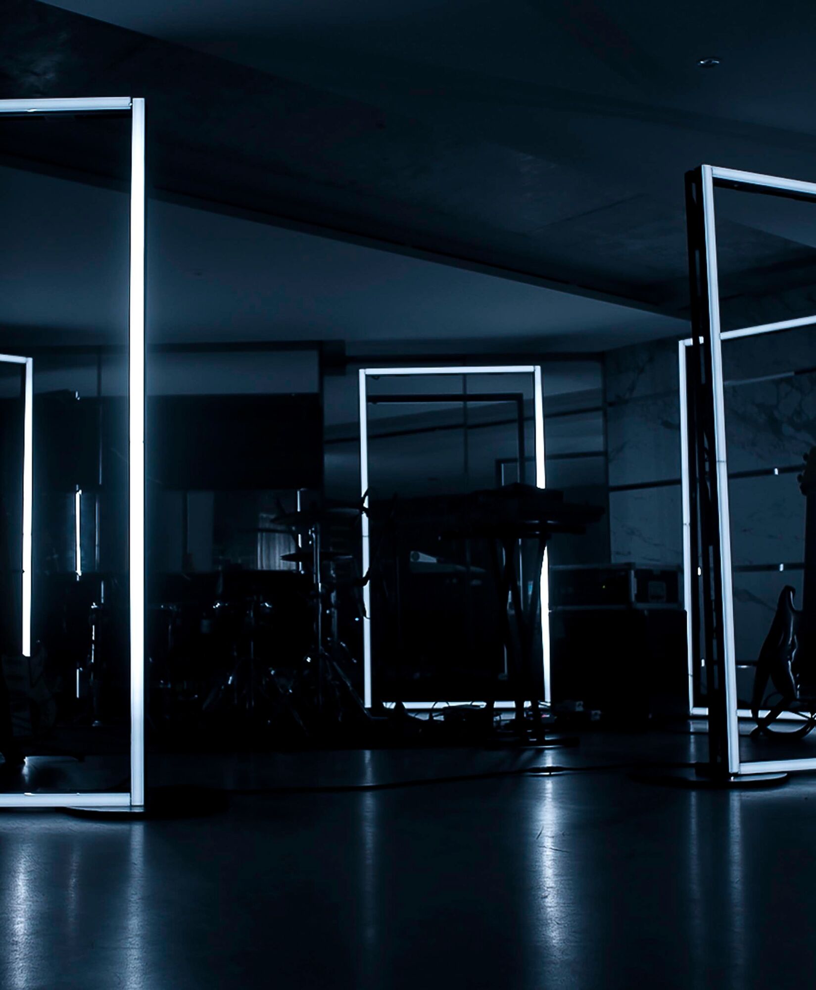 舞台以冷光燈管與漆黑光影呈現,傳達Saint Laurent對青年文化的酷勁寫照。