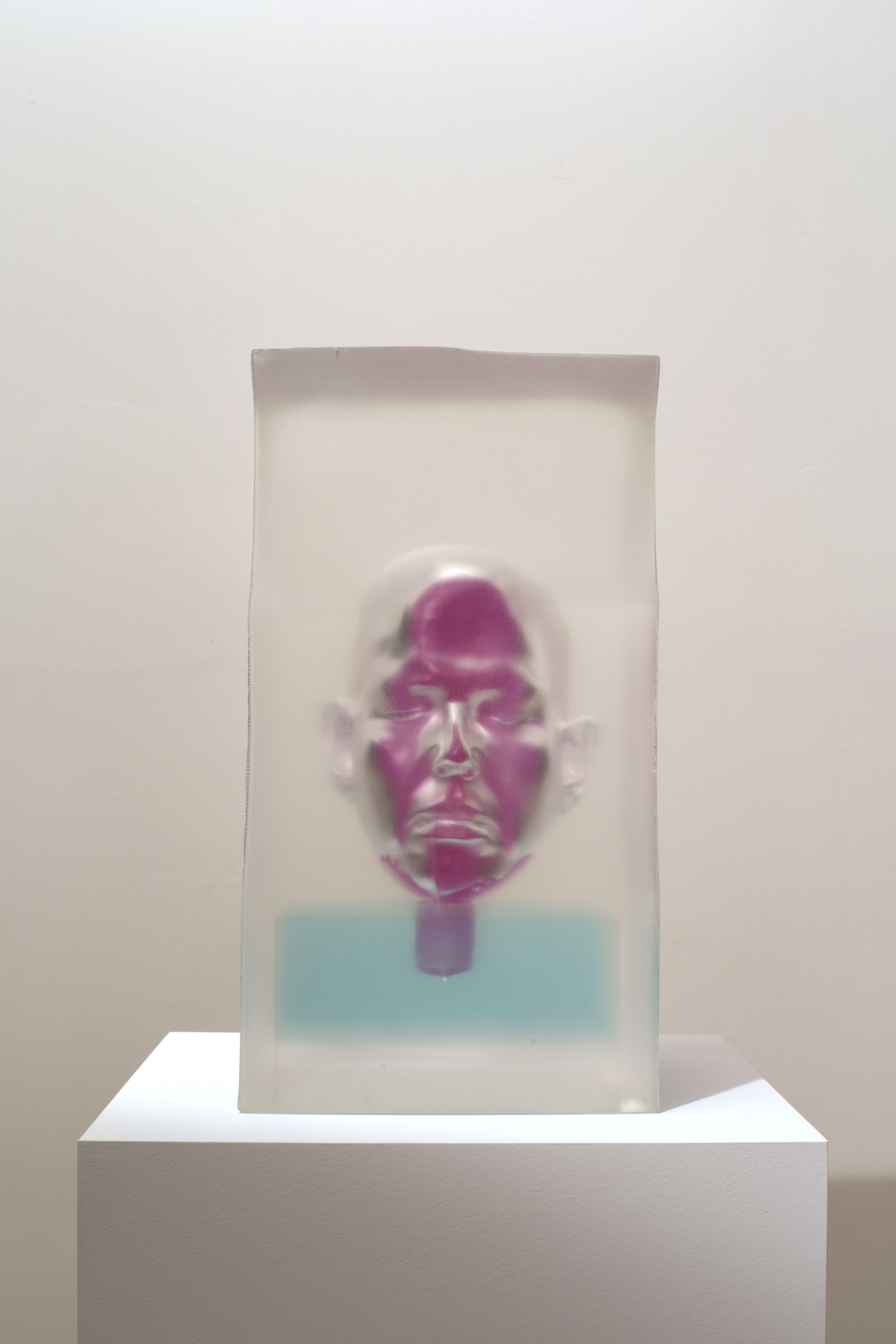 龐迪克的頭顱在〈顛倒之洋紅〉、〈套中黃綠〉與〈套中洋紅綠〉中以發光的清透色彩呈現,漂浮在半透明、純淨的壓克力方塊中。這些頭顱看似在漂浮、做夢、萌芽、窒息、浸溺或垂死,也有可能是思考著自己的命運或孕育著生命。在被壓克力方塊包覆的作品中,隨著觀眾在它們周圍移動的每一步,頭部分裂、繁殖、扭曲、時而消失。從某些角度來看,顏色是光彩奪目且半透明的,而從其他角度看,它像煙霧一般擴散和消散,色彩的半透明更是強化了變化中的氛圍。