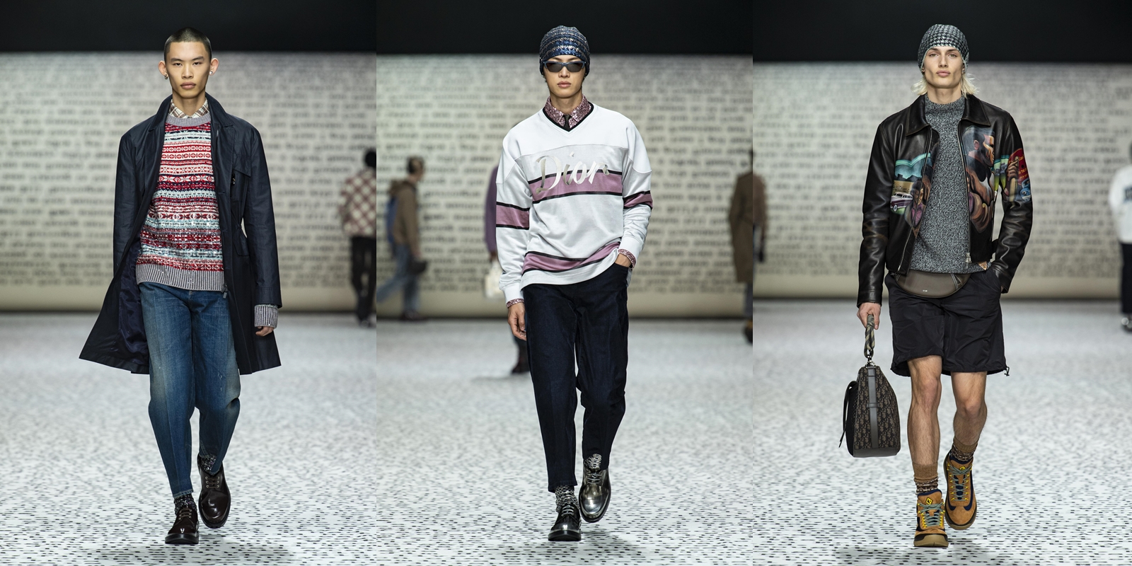 首度於倫敦舉行的Dior男裝秀,以Kim Jones在倫敦寓所珍藏的稀有初版書和文稿複本展開序曲,由卷藏珍本商Peter Harrington的文學專家Sammy Jay策展。當時Jack Kerouac的單頁、單段排列式初稿以三週的時間,謄寫於 36 米長的捲軸上,開展了他敘事時走過的道路,充滿爆發力的、革命性的表達方式,對文學和藝術產生了深遠的影響。而本次大秀就如閱讀故事般開展,一個長達120英尺的捲軸重塑了《旅途上》的傳奇手稿,呼應當時Jack Kerouac的生活和文學作品,以及他本人和品牌共享的創新精神。
