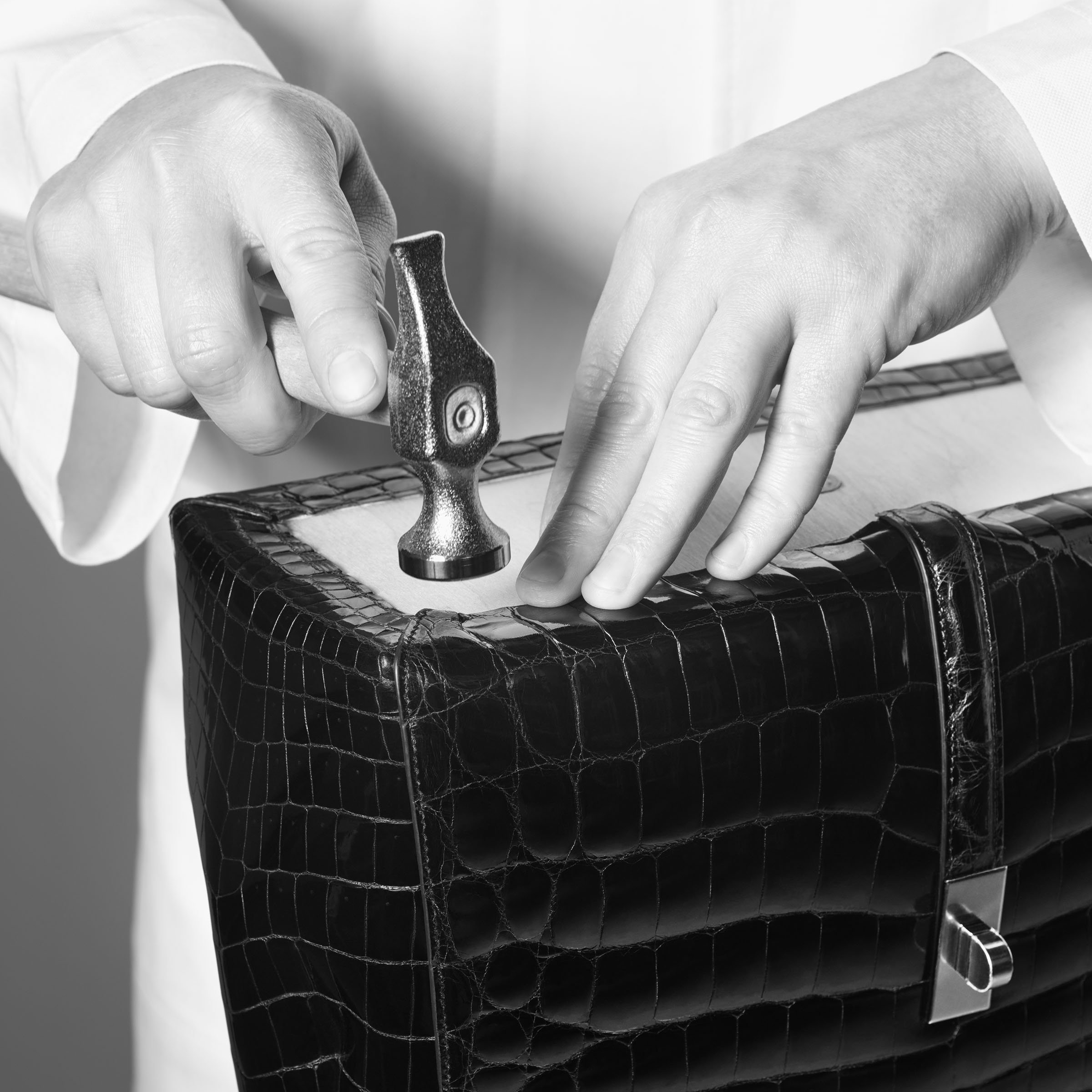 該製革廠具環境管理合規性之標準,且有數百年歷史,在歷史工藝上,將不同部分的皮革使用傳統的瑪瑙石進行拋光,以保持表面光澤和色彩深度,這種工藝使得鱗片平滑的自然起伏,且植根於傳統,需使用特訂的手工製作。每個皮革工匠都負責包款的整個製作,包括皮革的選擇、切割及對精緻的珍稀皮革的精確處理,展現百年工坊的精緻技藝。