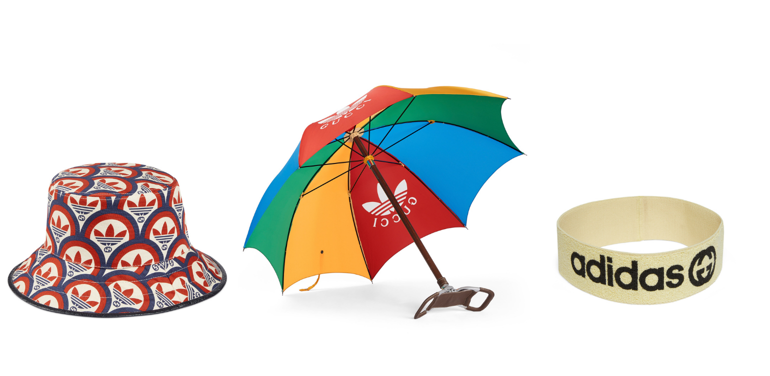 adidas x Gucci 多色印花漁夫帽,、多色雨傘、黃色頭巾 by Gucci