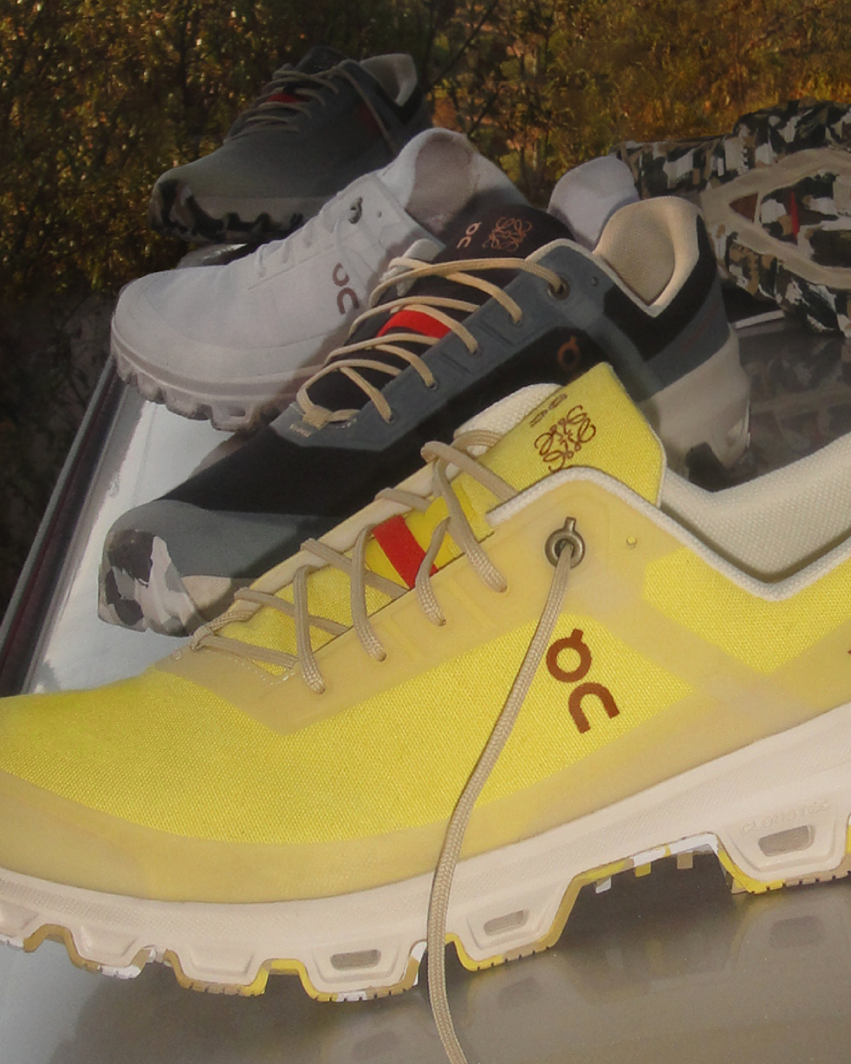 Loewe與On在追求卓越功能及精湛手工方面擁有相同理念,雙方共同創造的功能型運動服飾結合傳統工藝技術及手工製作。全新限量版Cloudventure越野跑鞋亦秉持以上精神,男女鞋款共推出黃、黑及白三款新顏色,另外還有第一波極受歡迎的Gradient Orange漸層橙色及Gradient Khaki漸層卡其色。