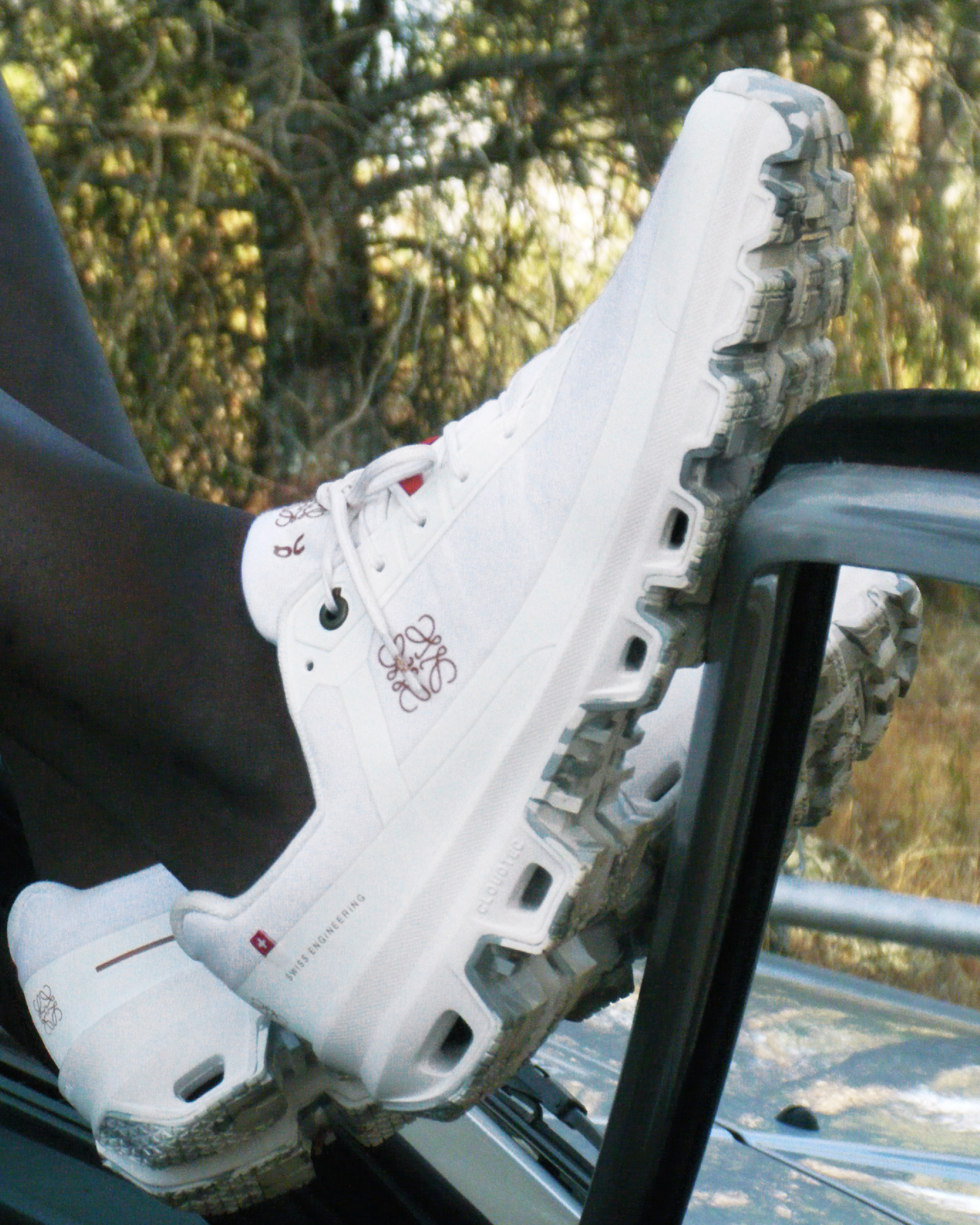 Loewe X On限量Cloudventure跑鞋設計適合戶外活動及都市生活,搭配On的專利Missiongrip™橡膠鞋底及Speedboard™中底技術;大理石紋鞋底更由人工逐一壓印,創造出獨一無二的跑鞋。而這系列的包裝材料貫徹環保理念採用100%回收聚酯纖維。