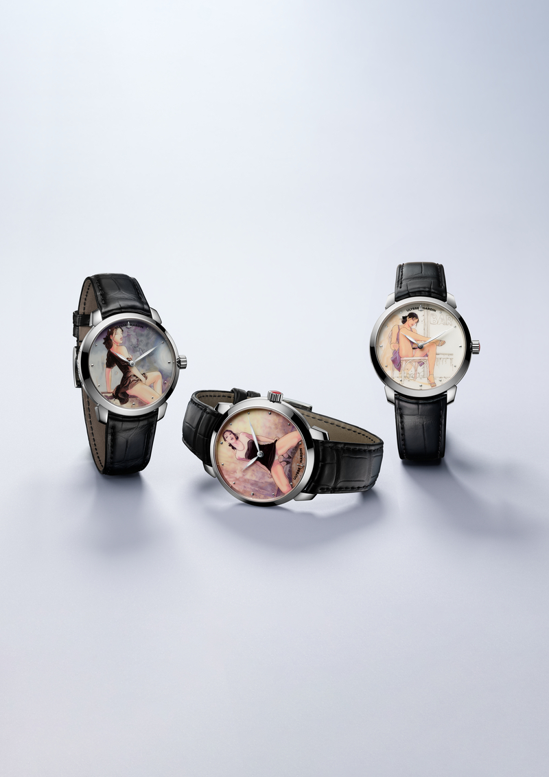這是雅典錶與馬那哈再度攜手合作。2019年,雙方以春宮作品中的永恆之愛為主題,共同 打造出一組香豔迷人的腕錶作品。如今,雅典錶再續如此獨特的合作情緣,攜手藝術家推 出三款春宮腕錶新作,活色生香地再現了《Click!》情色漫畫中的經典插圖。