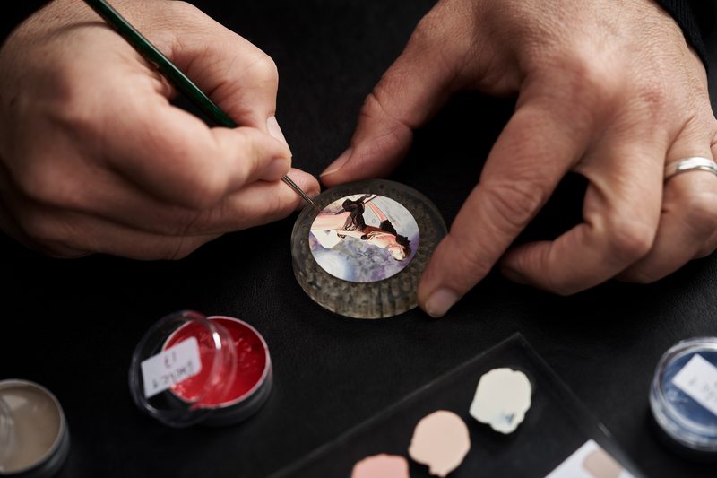 新款腕錶發佈活動暨《Click!》漫畫40週年慶典於2023年4月21日至22日由雅典錶與藝術 家馬那哈先生在巴黎Huberty & Breyne畫廊聯合舉辦。選址這一享譽國際的藝廊,旨在 禮讚被譽為“第九藝術”的漫畫藝術。 活動現場不僅精心陳列了《Click!》漫畫中的多幅 插圖,亦將觀者引入雅典錶傳承逾150年的微繪製錶藝術世界中。在瑞士汝拉山(Jura)的 勒洛克(Le Locle)小鎮,雅典錶的工匠大師以非凡的嫻熟技藝,世代延續這項珍罕卓絕 的工藝。 由於錶盤的面積幾乎僅為馬那哈插圖原稿的十分之一,品牌微繪大師需歷經數百 個小時悉心描繪,方能將原作的神韻風采凝縮於方寸錶盤之間。