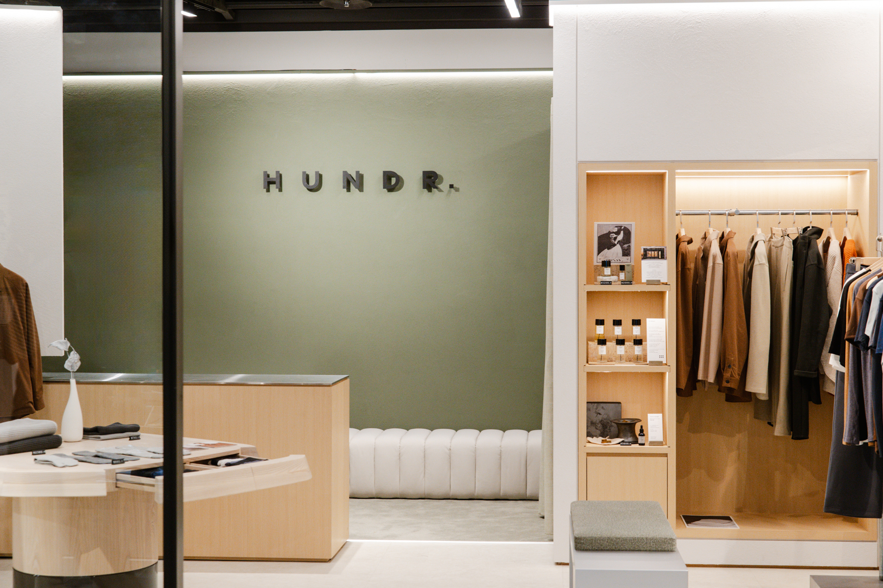 以半導體科技技術為基礎的時尚品牌Hundr.在誠品生活松菸開設全台首間體驗店。空間設計上採用流暢的弧形線條與天然礦物漆,體現品牌對簡約自然的詮釋,店內展售運用鈦金屬科技棉與半導體製程的「Air-coating」濺鍍技術的秋冬重裝外套,與各類天然材質內外衣著,為秋冬增添一抹有溫度的理性美學。