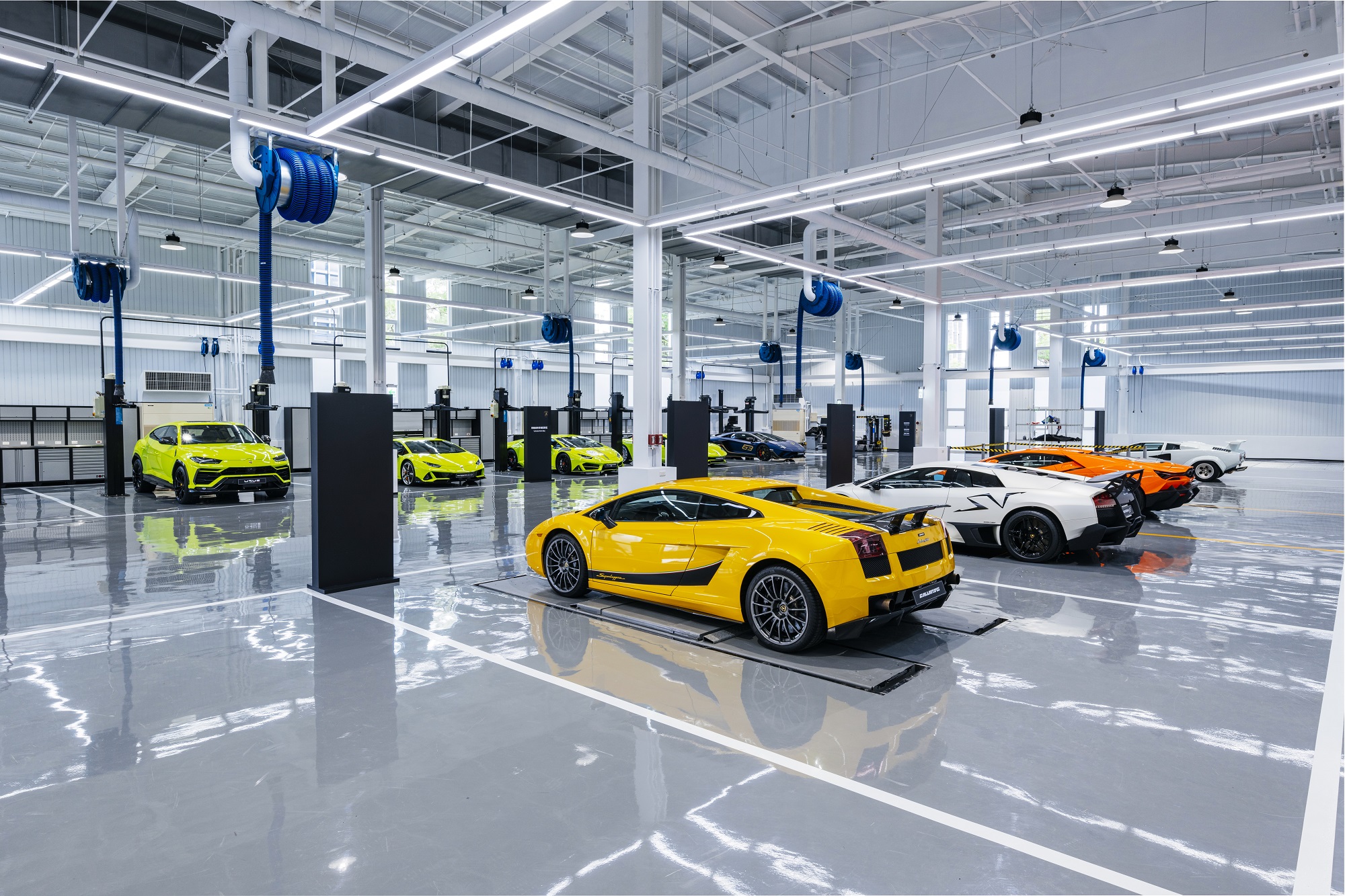 Lamborghini Taipei全新服務中心座落內湖,以流暢的線條、大膽的多邊形造型與鮮明的色彩點綴,打造出完全呈現品牌精神的環境,並精心打造尊榮氛圍,由原廠認證之專業工程師提供服務,致力提升車主的整體駕駛體驗。