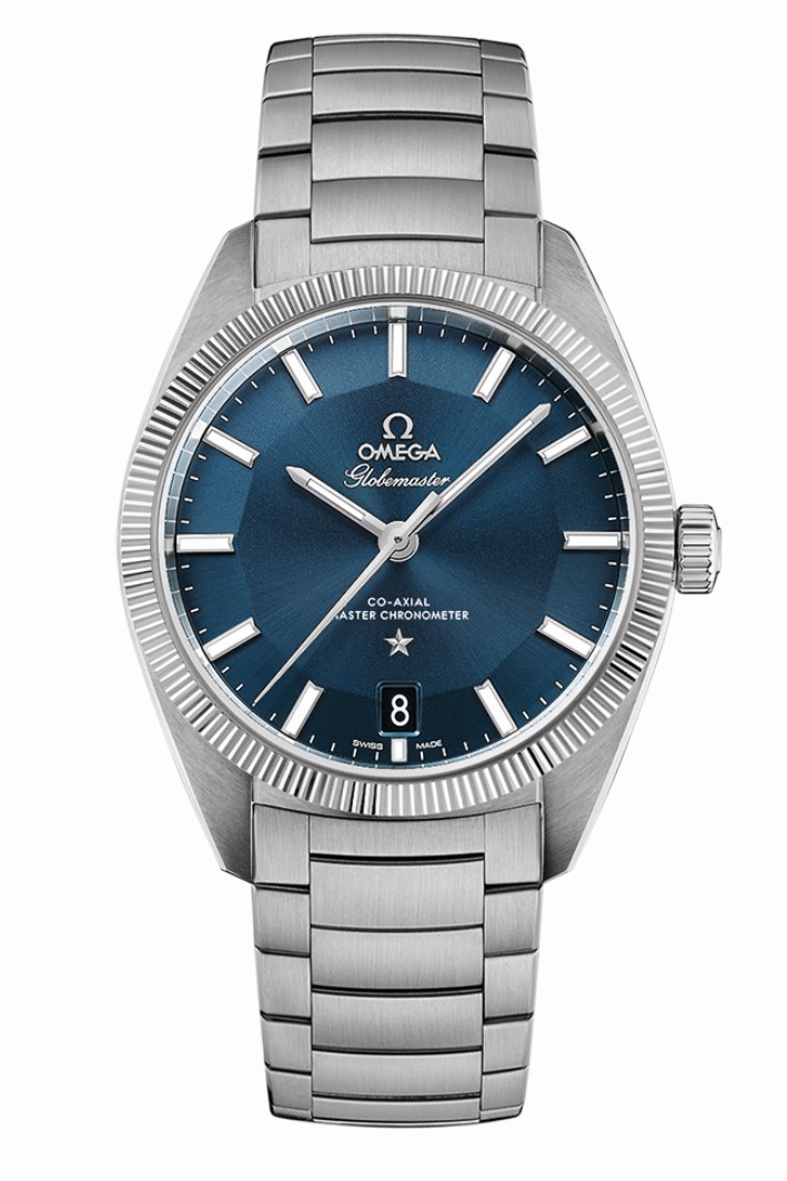 星座系列Globemaster腕錶的12邊形錶盤,靈感來自1952年的星座系列腕錶,每個轉折都象徵一個星座,而太陽線紋磨砂湛藍色的錶盤則有如深邃的夜空,無論正裝或休閒穿搭都非常適合。