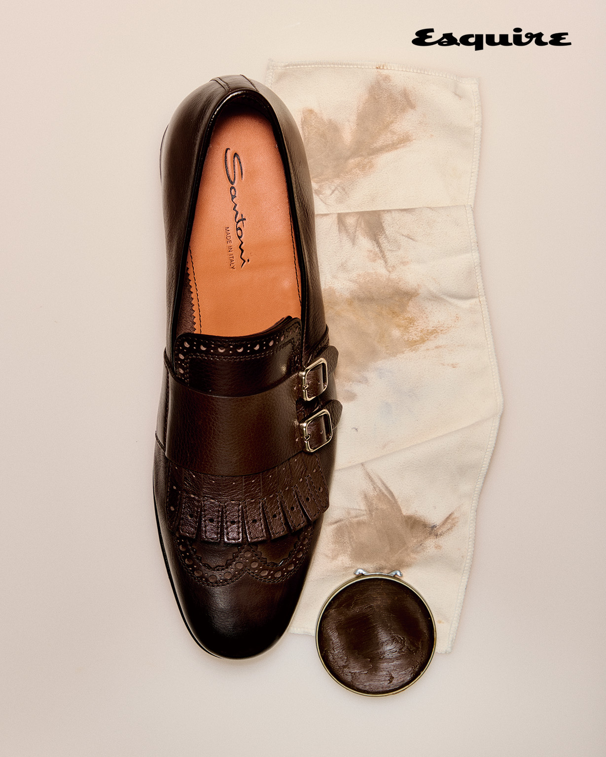 這雙義大利製的樂福鞋細節豐富:除了雙扣設計與經典打孔裝飾,鞋面還巧妙加入流蘇點綴。雖然元素繁多,卻在Santoni高超的製鞋工藝下完美融合,不顯繁複,反而散發出恰如其分的優雅氣質。