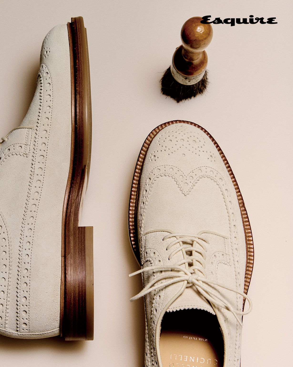 如果Thom Browne的長翼鞋適合穿來在曼哈頓街頭快步穿梭,那麼Brunello Cucinelli這雙以柔和色調與柔軟麂皮為特色的長翼布洛克鞋,則更適合午後在阿諾河畔悠然啜飲一杯濃縮咖啡。當遊客投來羨慕目光時,這雙鞋必定是眾人注目的焦點。