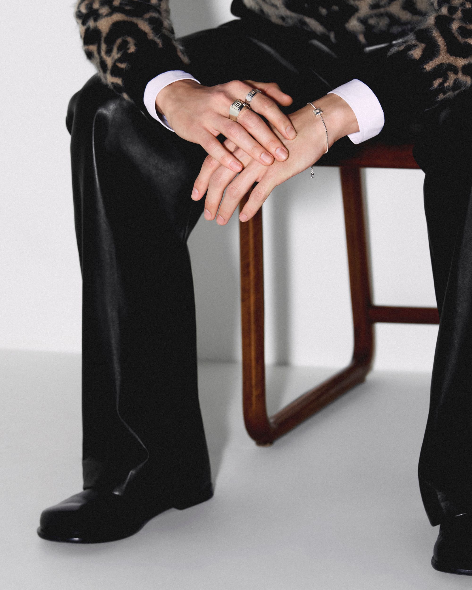 純銀在指間傳遞的溫度、項鍊與肌膚摩擦時的細微聲響。項鍊、手鍊、印章戒、單耳耳環不僅是飾品,更是一種身份的密碼。純銀質感既克制又張揚,折射出男性氣質裡矛盾卻迷人的一面。在低調中展現品味,在簡約中彰顯態度。