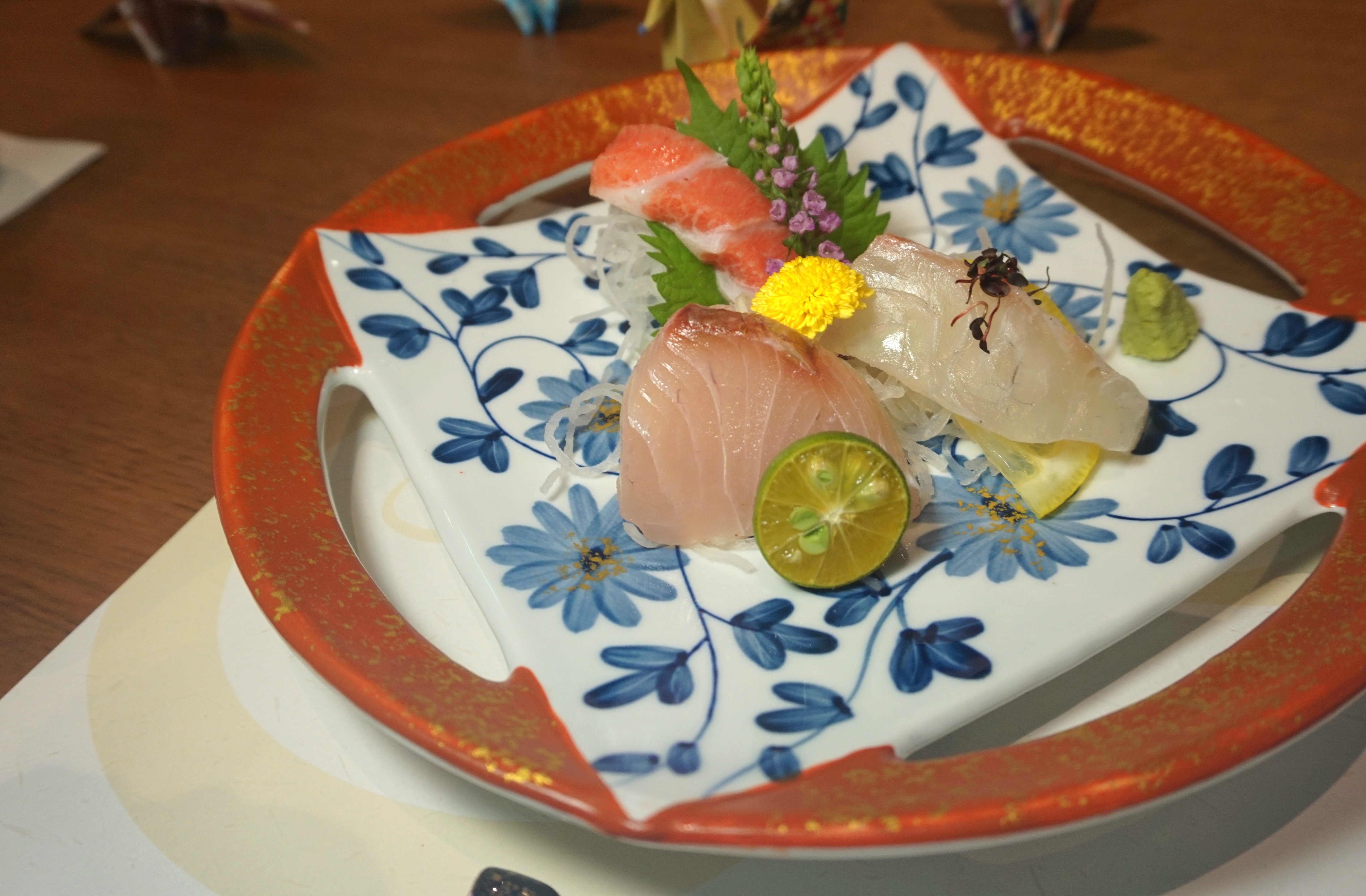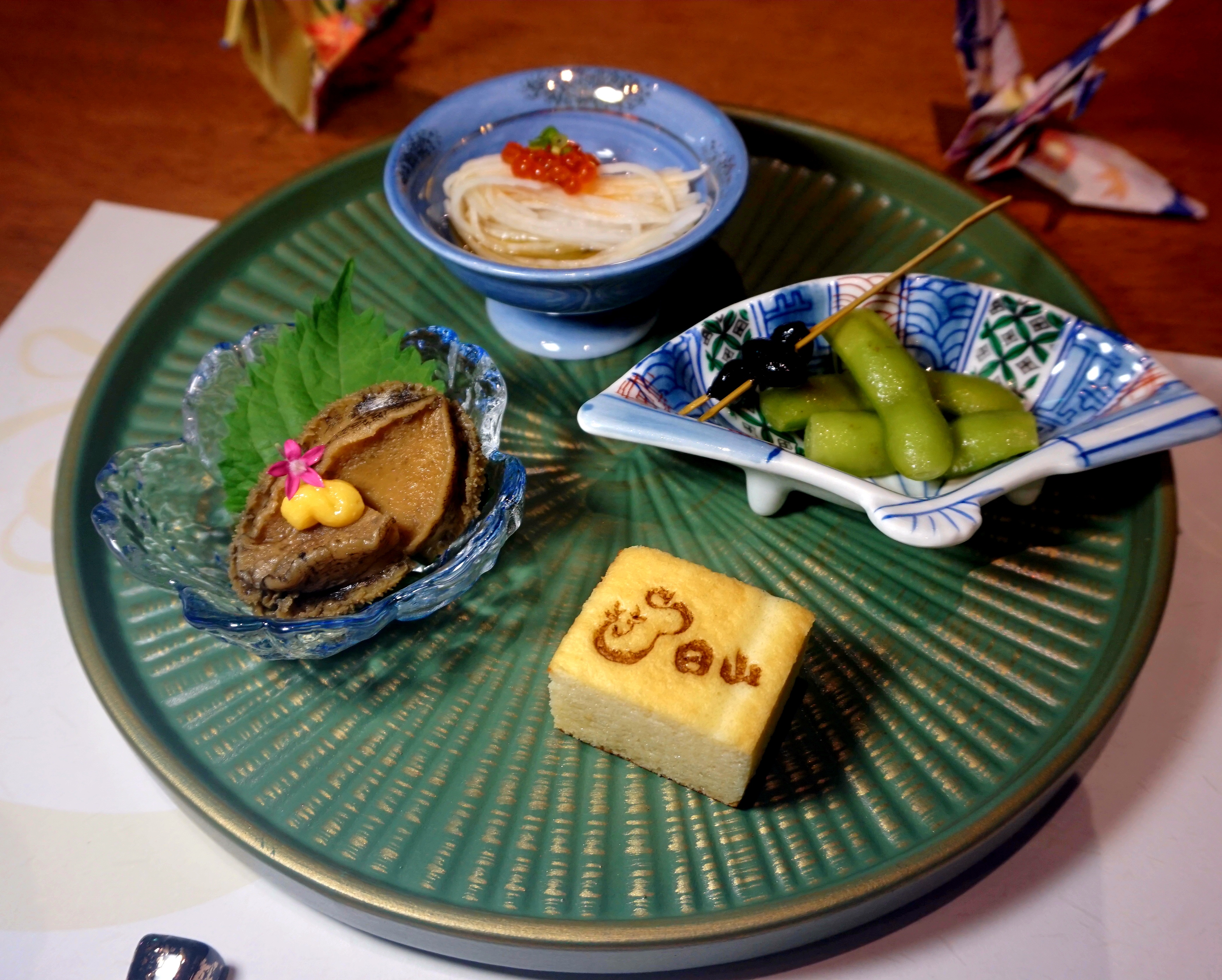 而在主打的「極上・日山」套餐中,王祥富巧妙結合台日兩地食材,以酒肴、先付、造里、燒皿、特品、吸物、甘味,搭上壽喜燒共譜精彩的風味交響。酒肴「精選旬三品」磯煮鮑魚、山藥細麵、厚蛋燒皆由傳統日本料理再添新意詮釋,彈牙的鮑魚搭上特製蛋黃醬微鹹中帶著爽口的酸甜、厚蛋燒香甜綿密,口感宛如蛋糕般讓人驚喜。