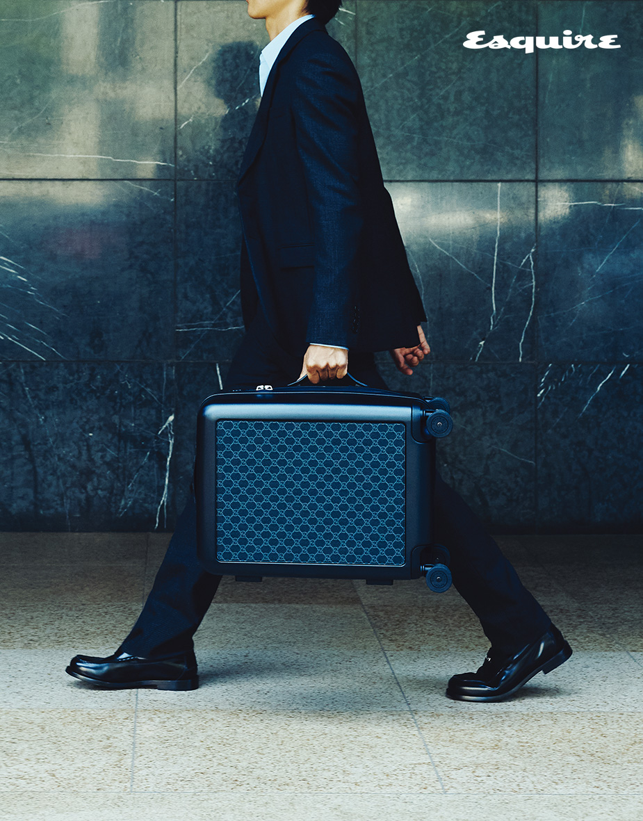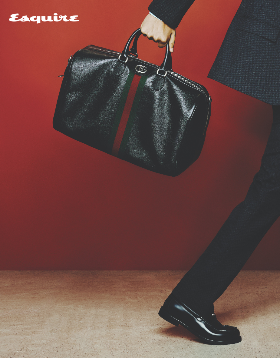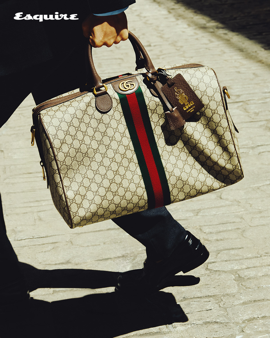 西套裝、莫卡辛鞋、Gucci Savoy系列黑色軟皮中號旅行包 by Gucc