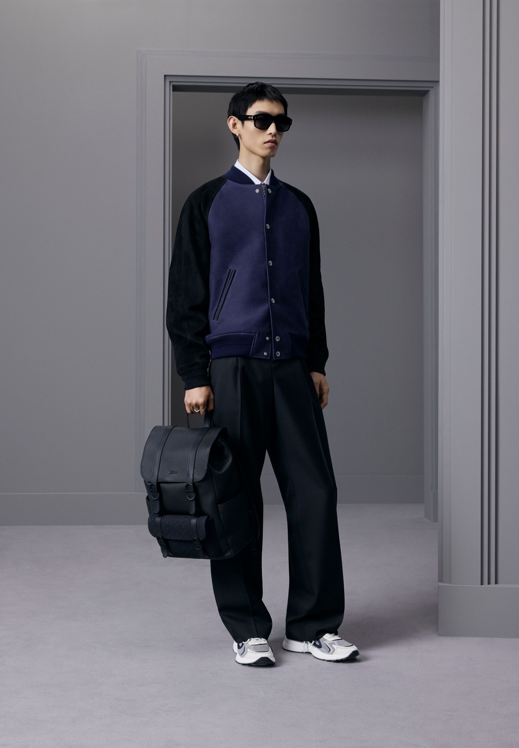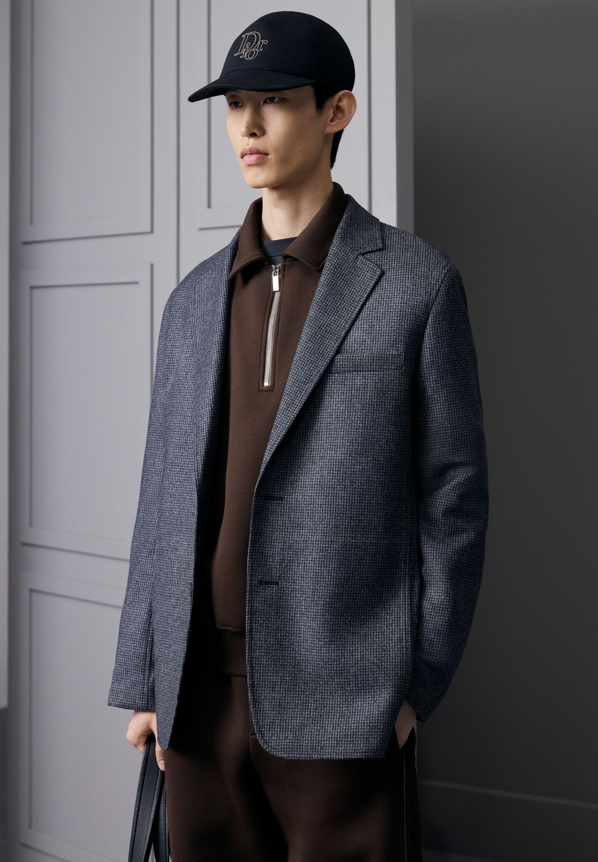 剪裁始終是Dior的靈魂,而在本季,它成為融合與蛻變的舞台。品牌以此為核心,將傳統商務衣櫥轉化為兼具運動感與高級訂製的混合結構:西裝、夾克、工裝褲與丹寧並置,既嚴謹又鬆弛。這是一種從「精品店作品」延伸至現代都會的流動線條。色彩方面,中性的黑、海軍藍與米色構築基底,深紅與蘋果綠點亮其中;而標誌性的Dior灰以多層次變化呈現,從霧面銀灰至石墨深灰,訴說著時代的層疊感。熟悉的Dior Oblique圖案則被賦予漸層效果,如同時間在布料間的呼吸。