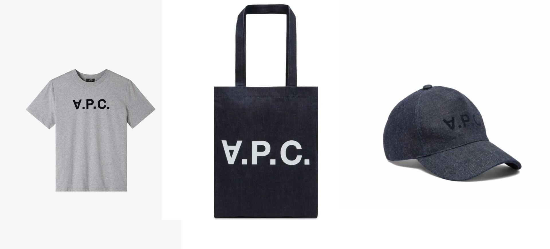 呼應品牌的初心,V.P.C.系列以「生活即風格」為概念核心,延續1987年品牌以郵購起家的故事。從A.P.C. VPC GOTS有機棉T恤到大VPC日本原色丹寧托特包、丹寧棒球帽,皆以簡潔字體與挺實布料展現出巴黎式的理性俐落。