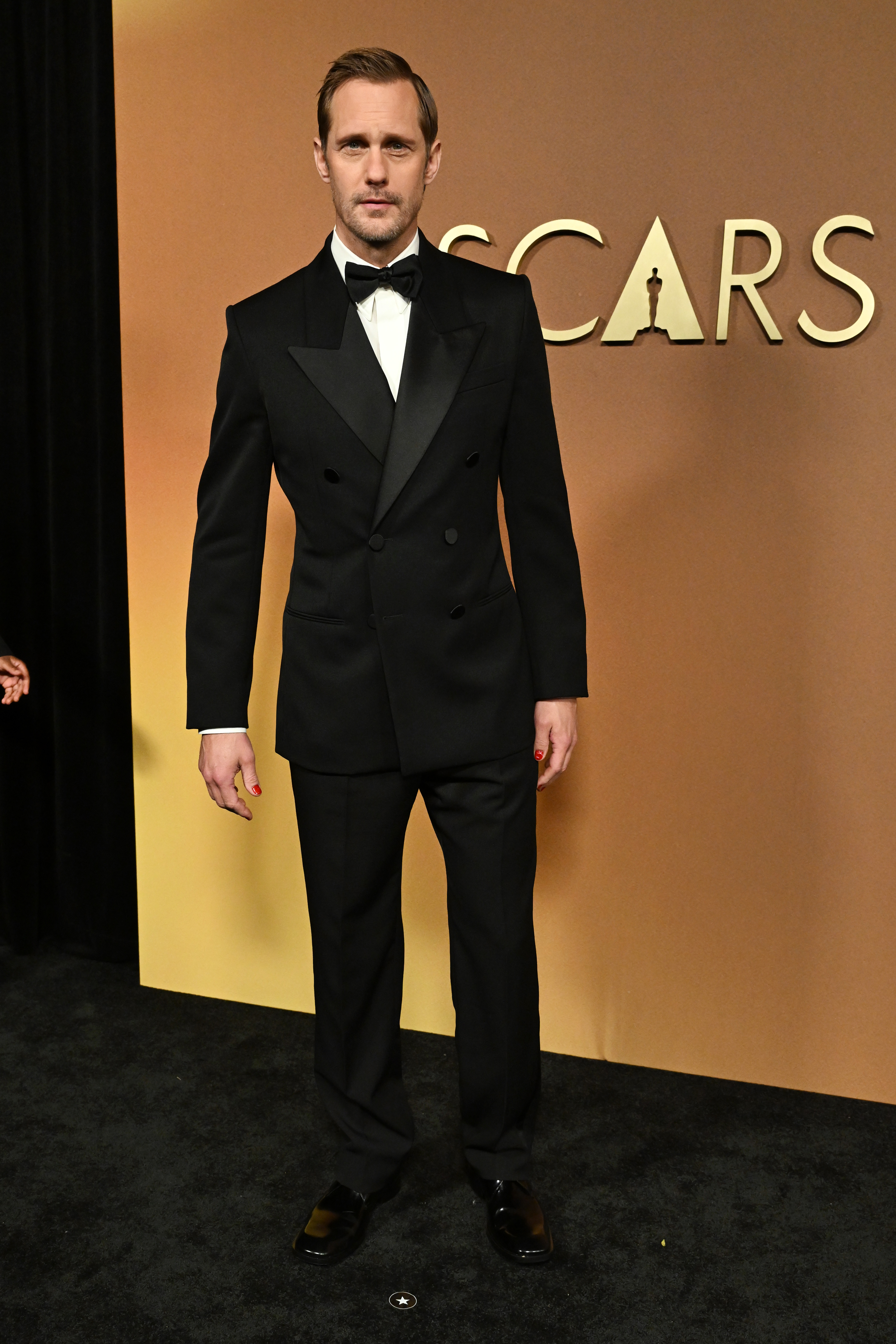 Alexander Skarsgård穿上經典的Saint Laurent雙排扣晚禮服,這身裝扮還有個亮點——紅色指甲。低調、俏皮,非常符合他現在的風格