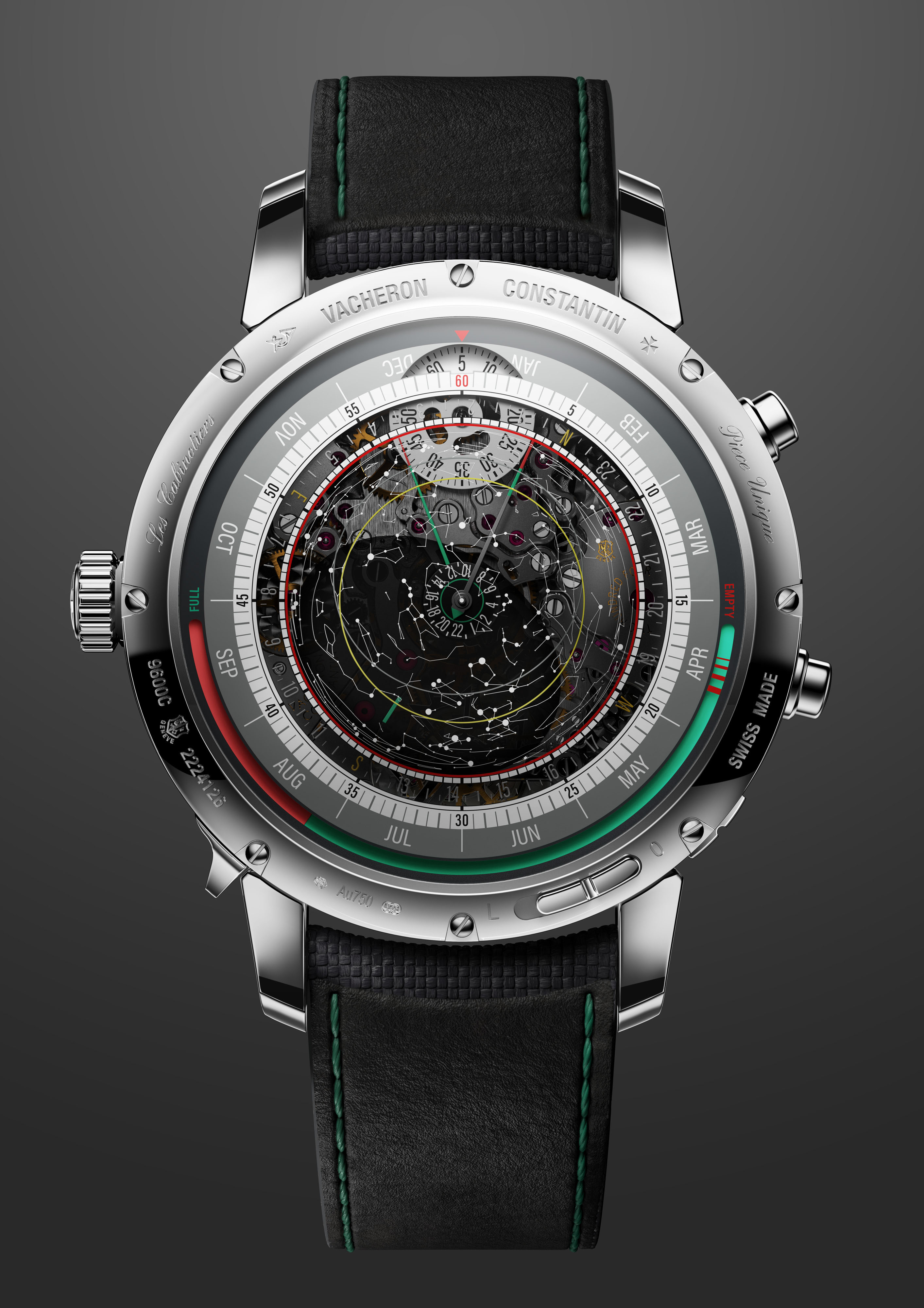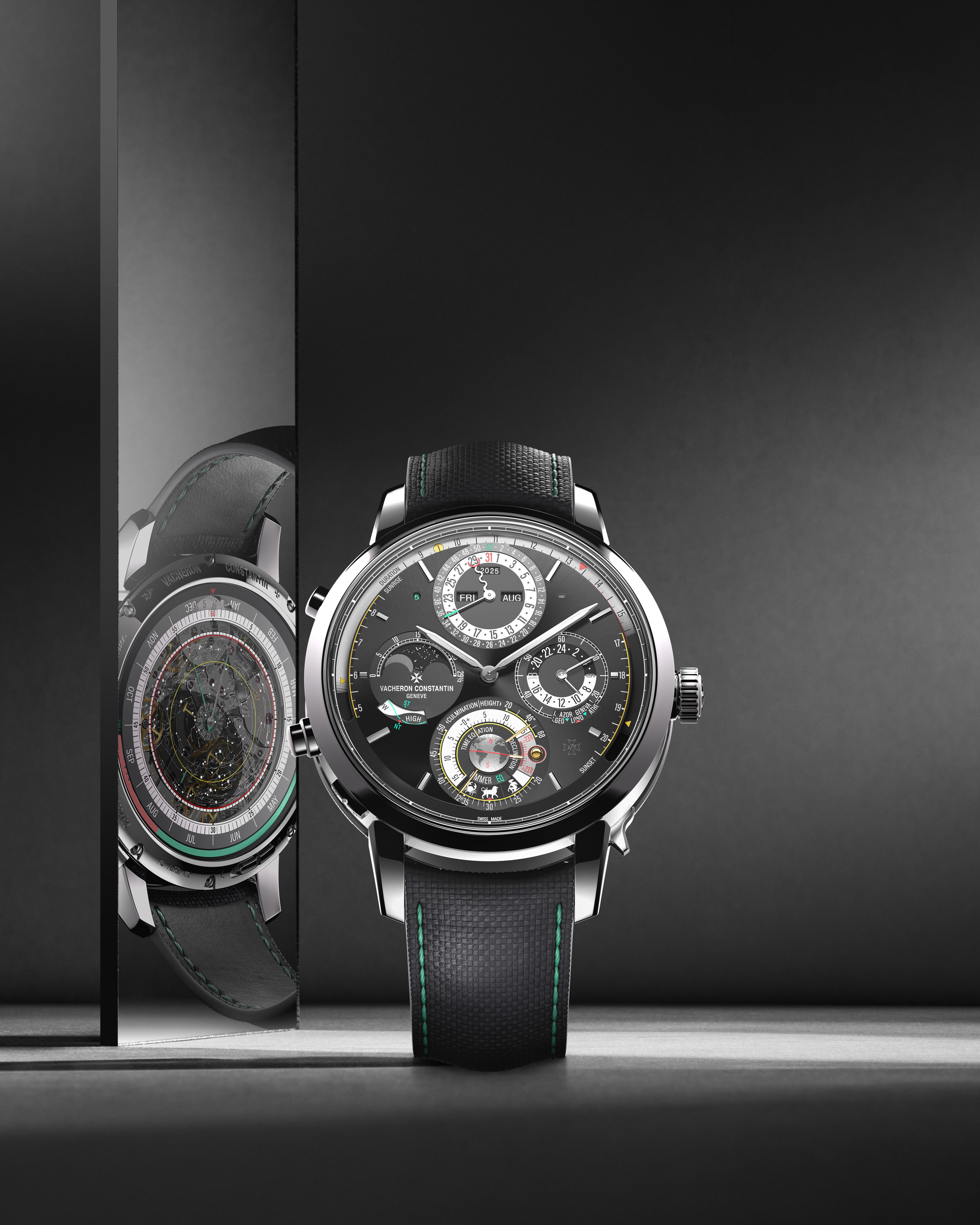 製錶業界已經很久沒有出現這樣的大場面──江詩丹頓將超複雜懷錶的設計,直接縮小成腕錶等級,能在一只腕錶中塞進41項複雜功能,多達1,521枚零件,絕對也是創紀錄的成就,不過當然也用掉了腕錶正反兩面的所有空間。至於是哪41項功能,如果一一列出那這整頁文字都不用寫了!我們挑重點說:西敏寺鐘聲三問報時、萬年曆、世界時區、陀飛輪、雙追針計時碼錶、能同時顯示標準時/太陽時/恆星時的三種讀時模式、全球首創天體追蹤功能、動力儲存顯示……