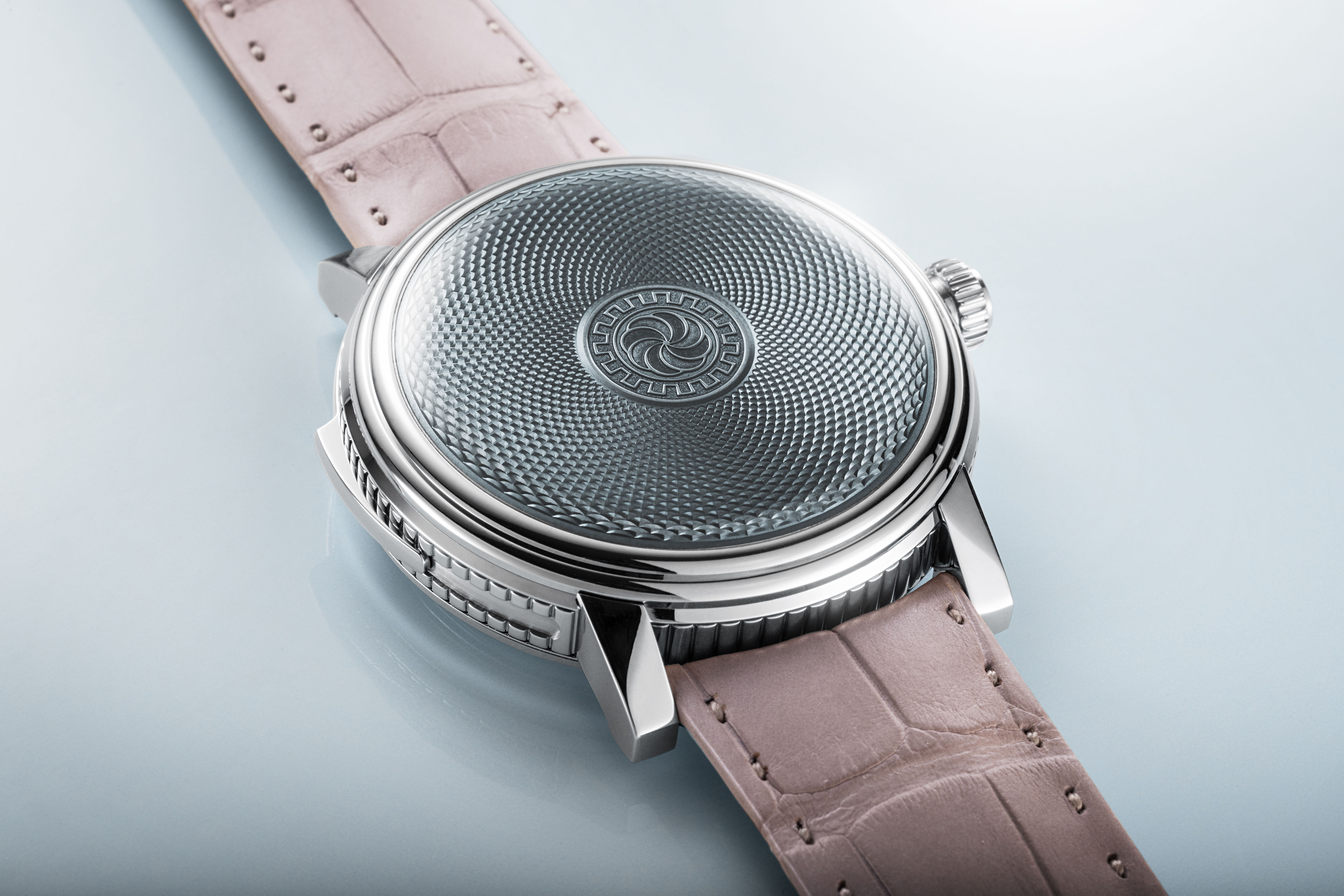 為了更聚焦在聽覺的感受,帕瑪強尼索性在視覺上把時、分指示都拿掉了?!確實在正面只能見到美侖美奐的半透明大明火琺瑯,配上由斐波那契數列而來的璣鏤飾紋,要知道時間只能啟動三問報時用聽的。但其實將腕錶翻轉後,就可以在極為不顯眼的地方找到祕密錶盤的運作方式,只能說真的是很純粹的神祕!