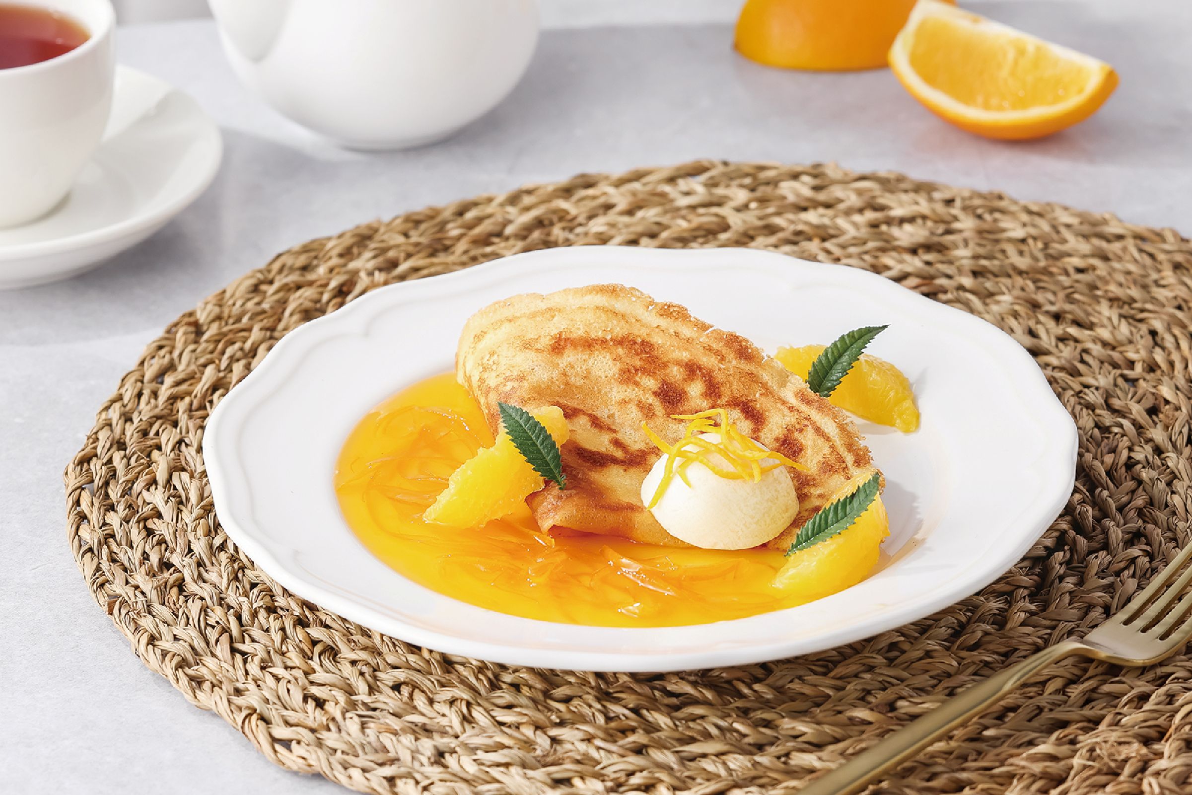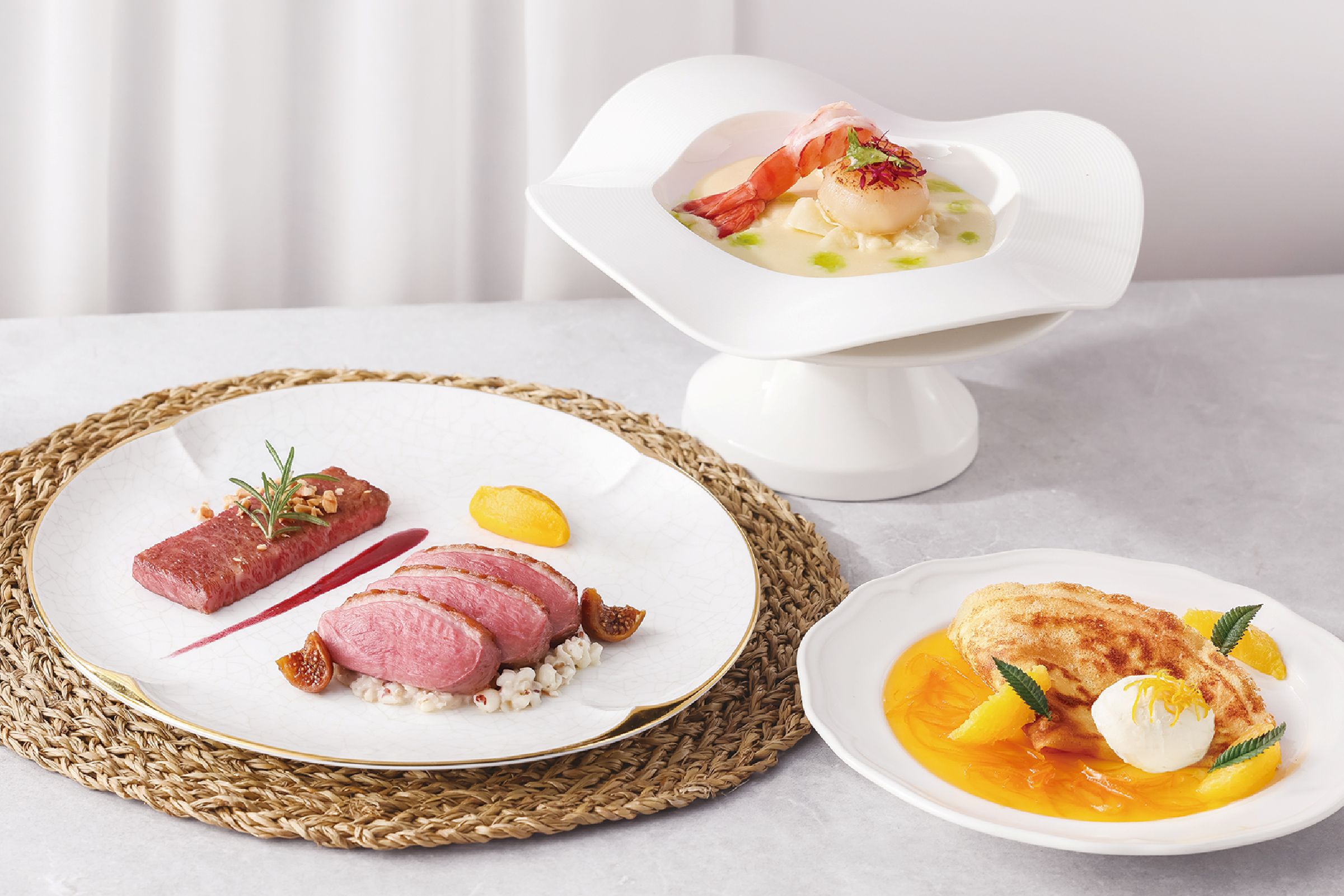 聯名饗宴延續十月米其林餐會合作所開啟的靈感,核心概念來自夏慕尼引以為傲的「醬汁藝術」。主餐以日本 A5 和牛與花東櫻桃鴨胸為雙主角,搭配以小牛高湯、馬德拉紅酒與桑葚熬製的層次Gravy,呈現冬季的濃郁與果香層次;同時以藜麥薏仁飯致敬主廚特製燉飯的質地,並以肉桂蘿蔔泥帶來細膩暖意。海鮮主菜則選用北海道干貝與海大蝦,以黃檸檬奶油醬點亮鮮味,使風味更為清爽、立體。壓軸甜點法式香橙可麗餅佐哈根達斯香草冰淇淋,透過柑曼怡的果香與奶香交融,為冬夜畫下浪漫句點。