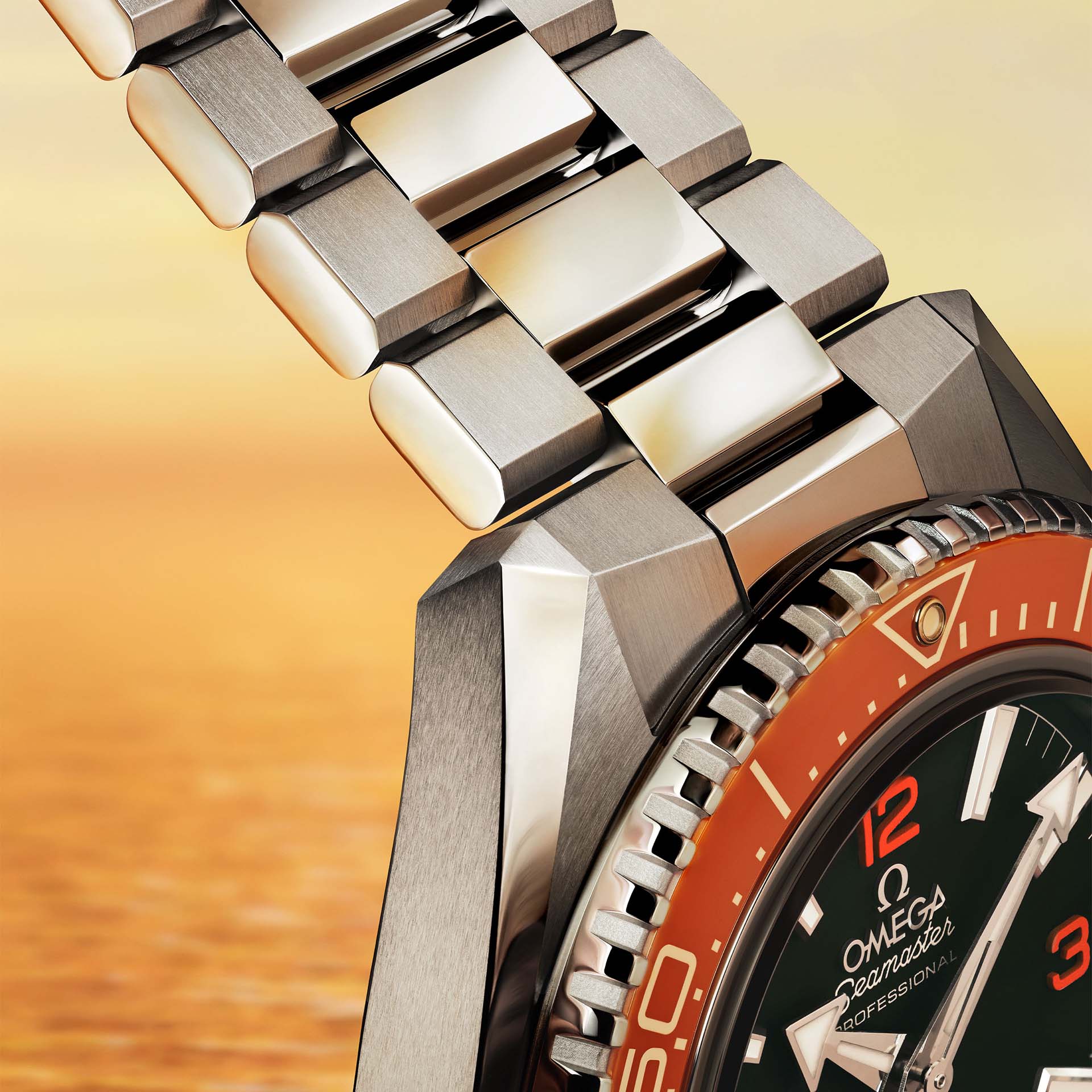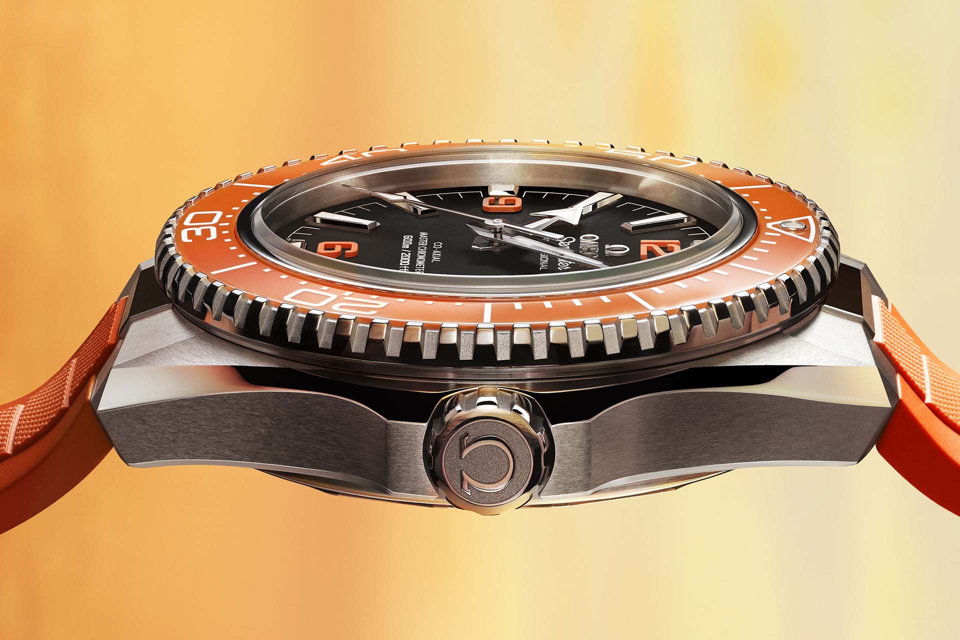 自誕生以來,橘色便是Planet Ocean系列的鮮明標誌。在陶瓷錶圈上呈現橘色一直是技術挑戰,歐米茄為此投入大量心力精進陶瓷工藝,終於成功研製出更為鮮明的橘色。橘色款式錶盤飾以橘色啞光漆面阿拉伯數字時標,搭配全新橘色陶瓷錶圈,並鑲嵌白色混合陶瓷潛水刻度,延續系列獨特識別。