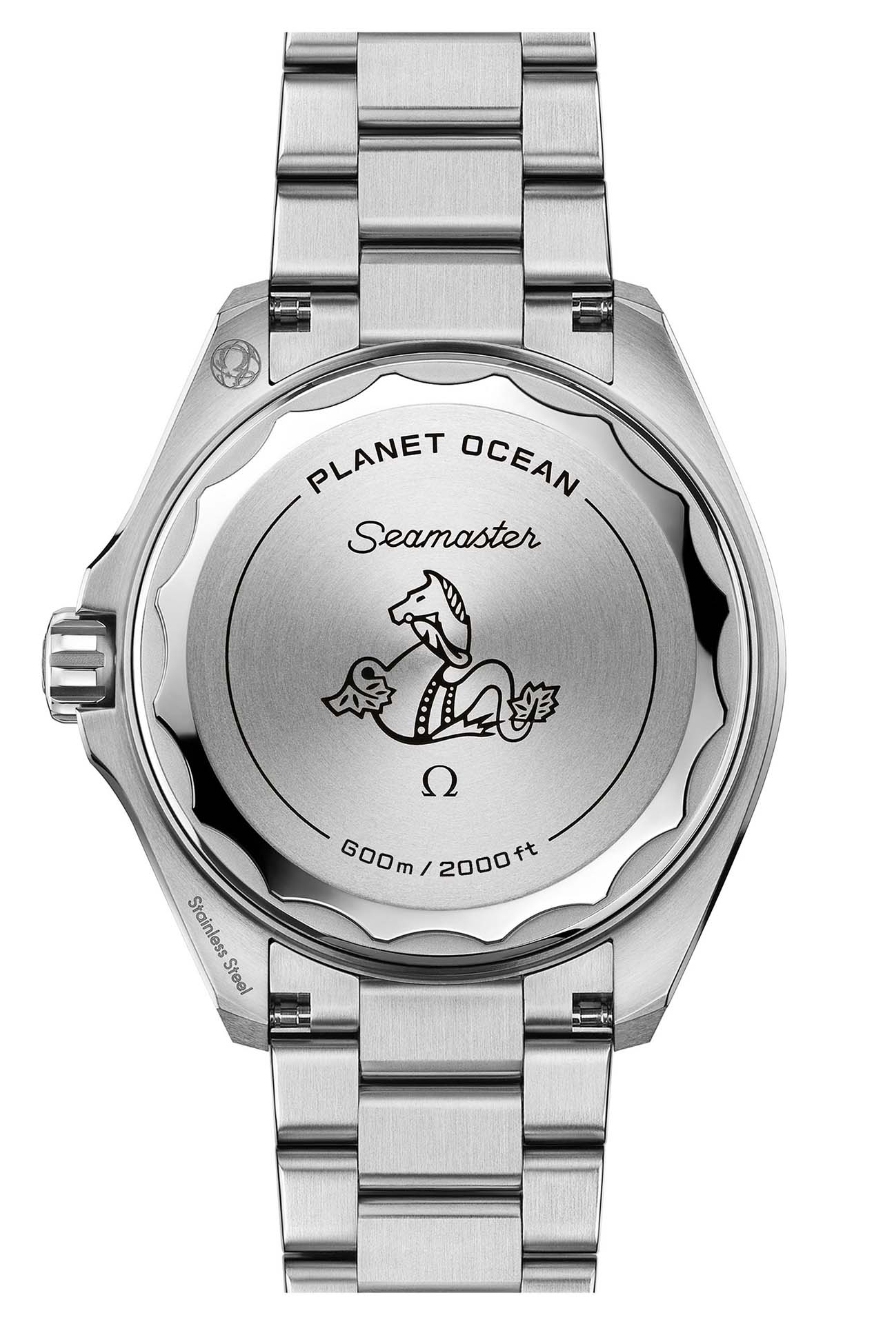 錶殼結構採用大膽創新的雙層設計,由主體與內部鈦金屬環組成,稜角更加分明。值得注意的是,歐米茄移除了伴隨系列20年的標誌性手動排氦閥門,使整體線條更為簡潔。錶背改採5級鈦金屬旋入式底蓋取代藍寶石水晶,不僅減輕重量更進一步提升強度,底蓋並刻有波浪紋邊緣與經典海馬徽章。
