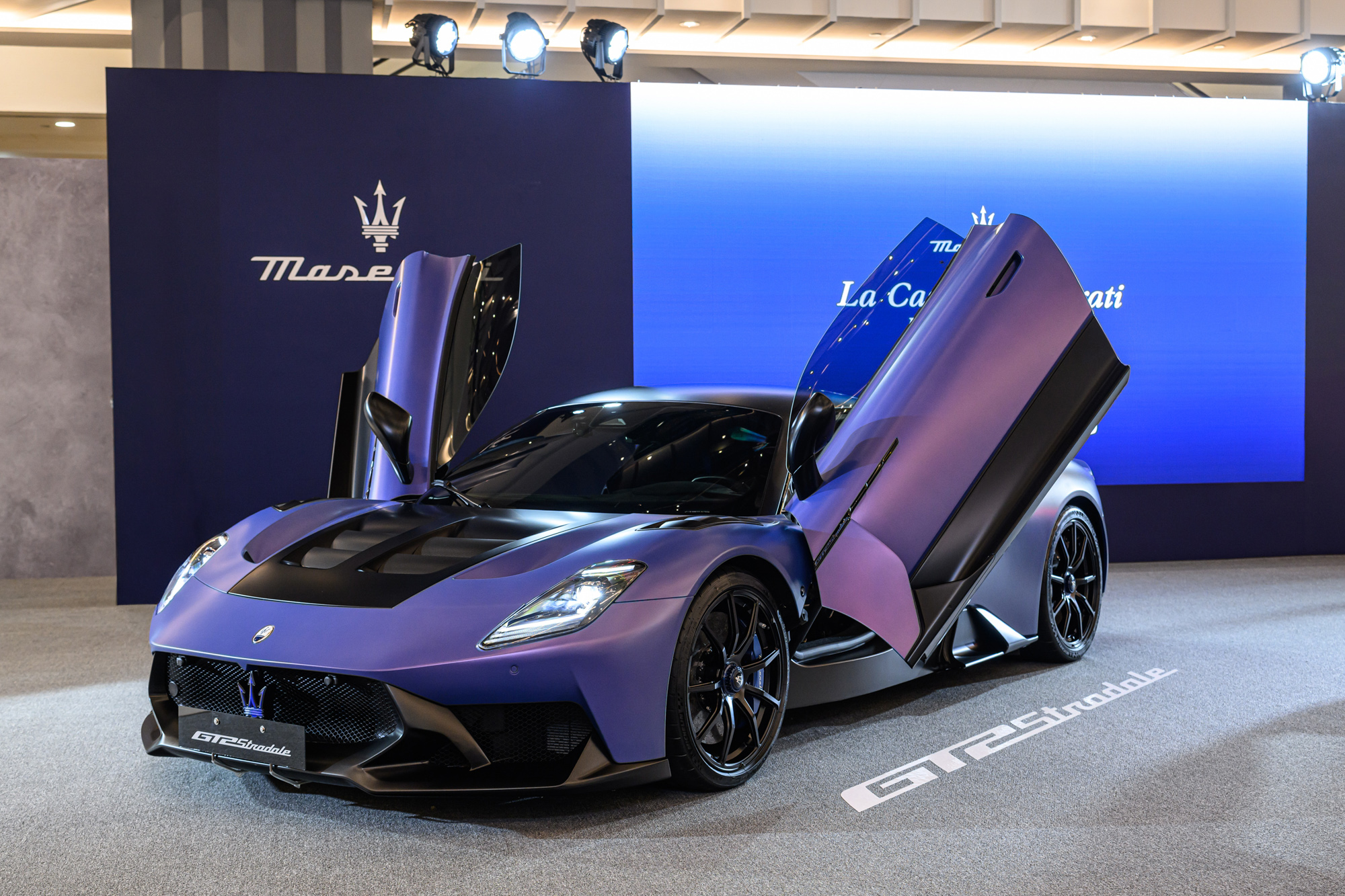 以首次公開亮相的GT2 Stradale領銜,展出包括GranCabrio Trofeo與純電Grecale Folgore等新世代核心車款,呈現Maserati在燃油與純電之間的雙重性能語彙。