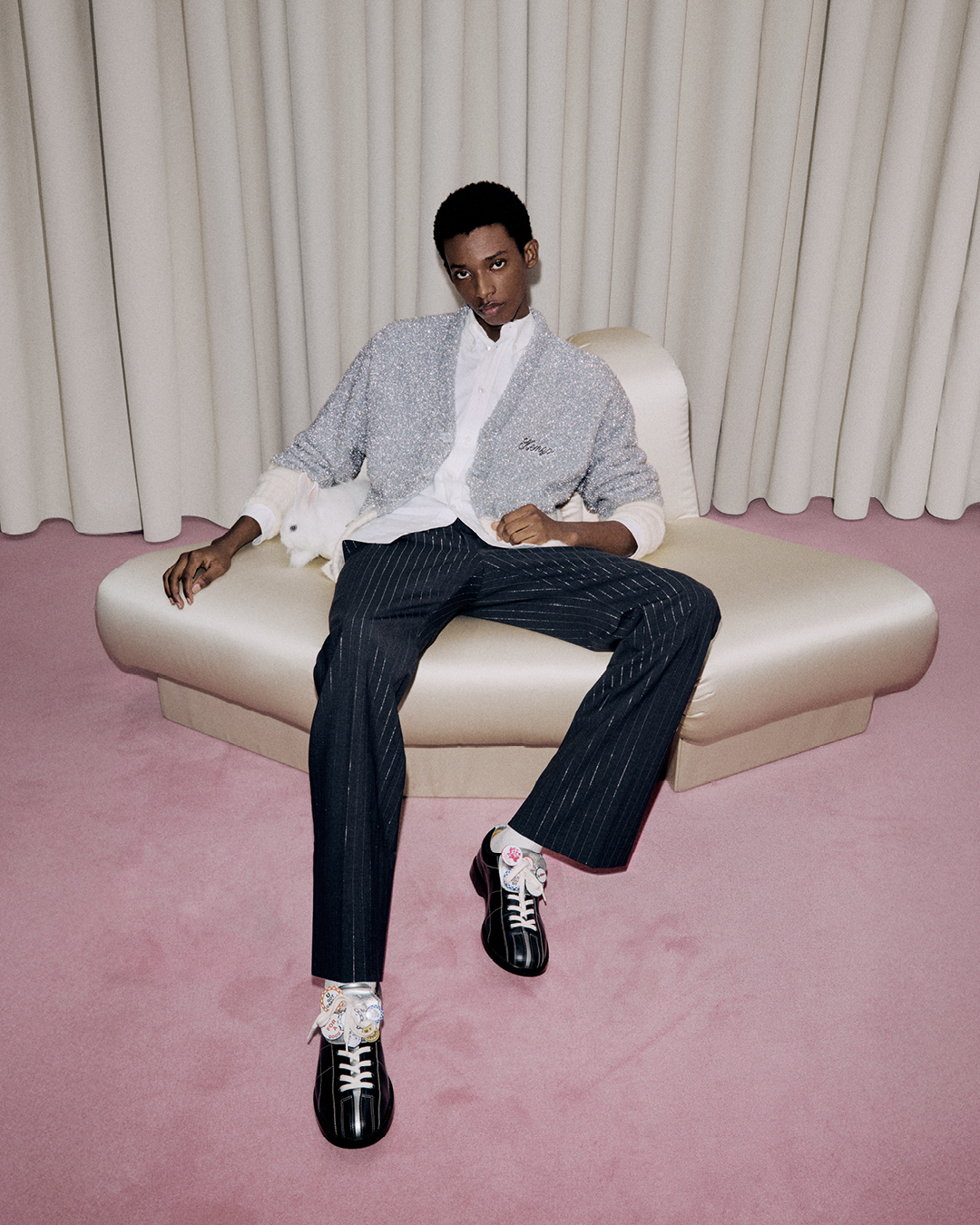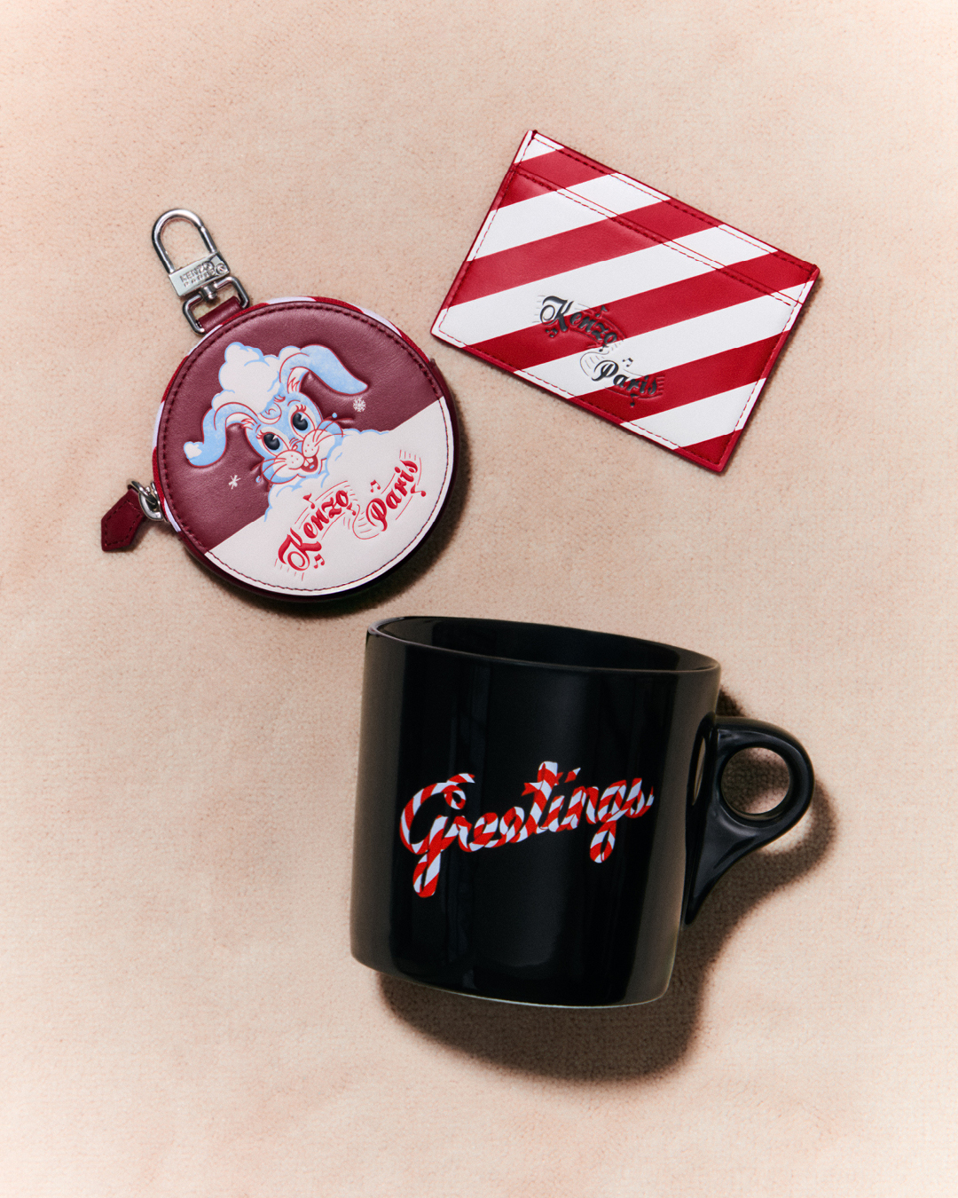 標誌性的紅白拐杖糖化身為視覺語彙,延伸出系列的 「KENZO Greetings」 主題。靈感源自聖誕禮物包裝與節日時分的祝福傳遞,以當代語彙重新詮釋傳統節慶符號,加進品牌特有的玩心節奏。