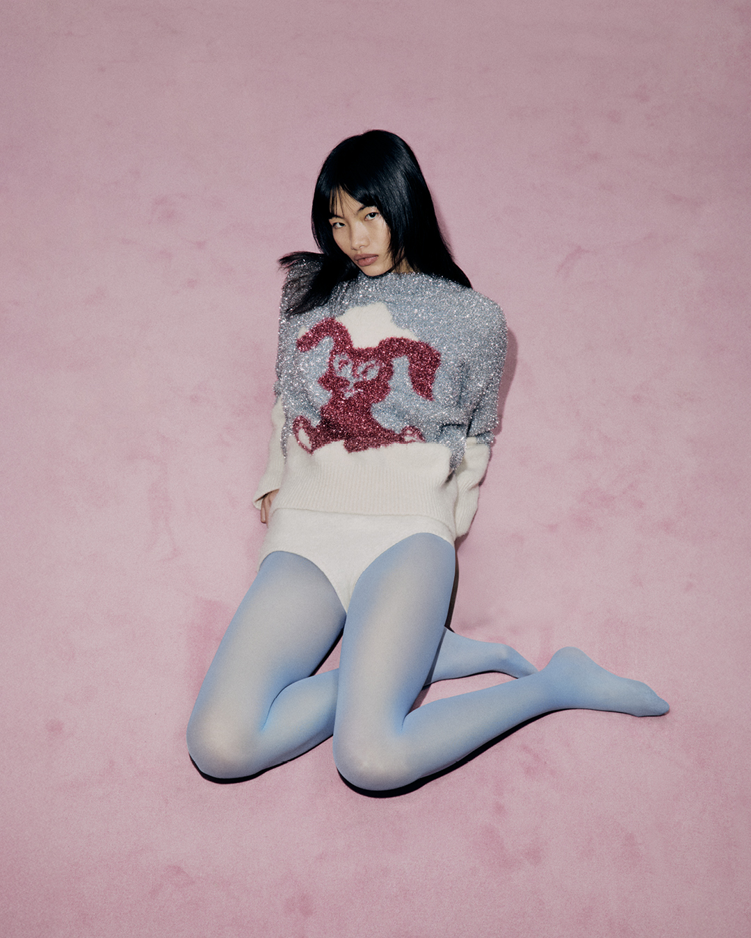 系列中也藏入 1950 年代美式聖誕問候卡的音符細節,輕巧跳躍於布面之間,向經典聖誕樂曲致意,替冬日穿搭注入一絲懷舊韻味。