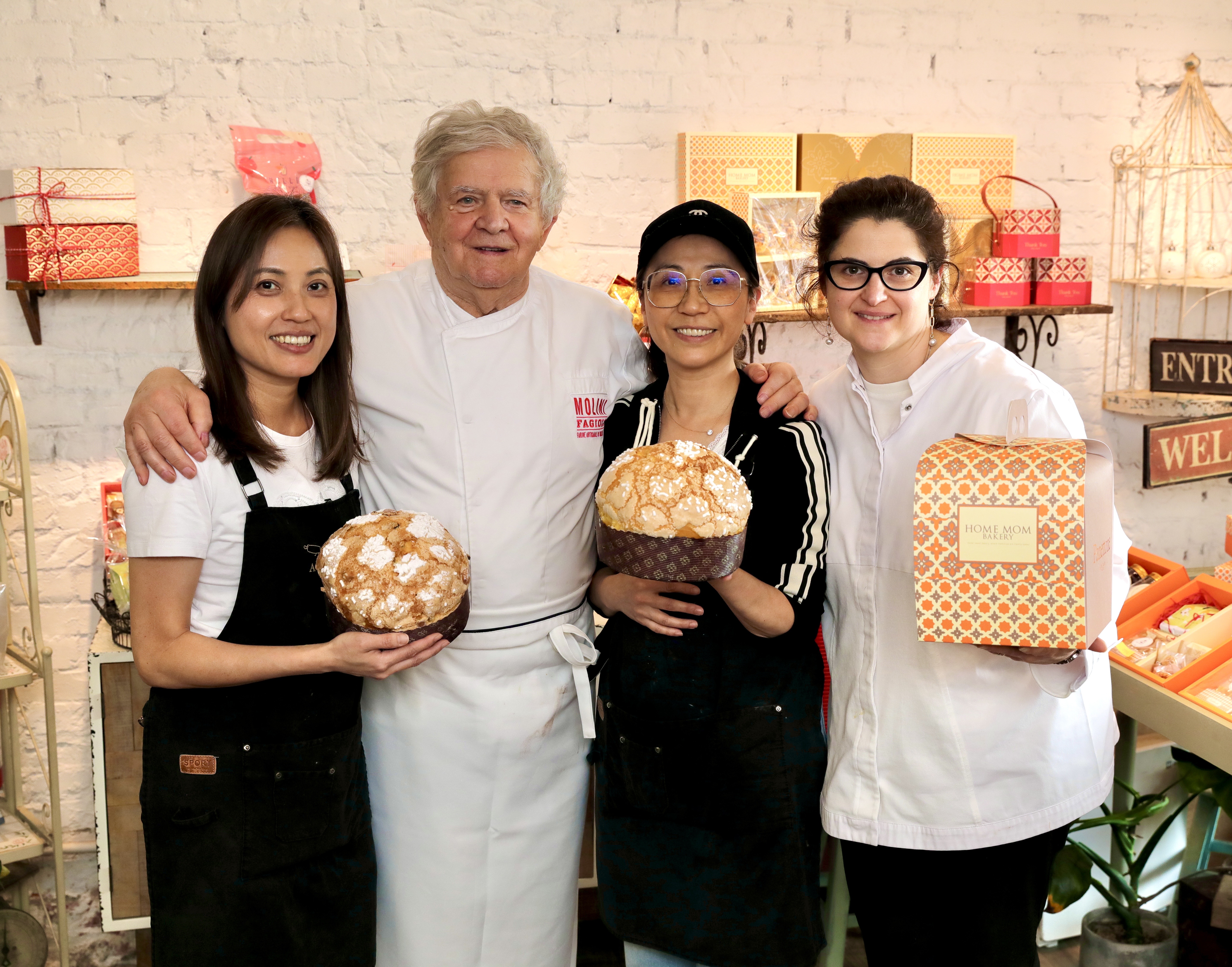 Home Mom Bakery創辦人倪淑敏與Rolando Morandin學習聖誕麵包做法。